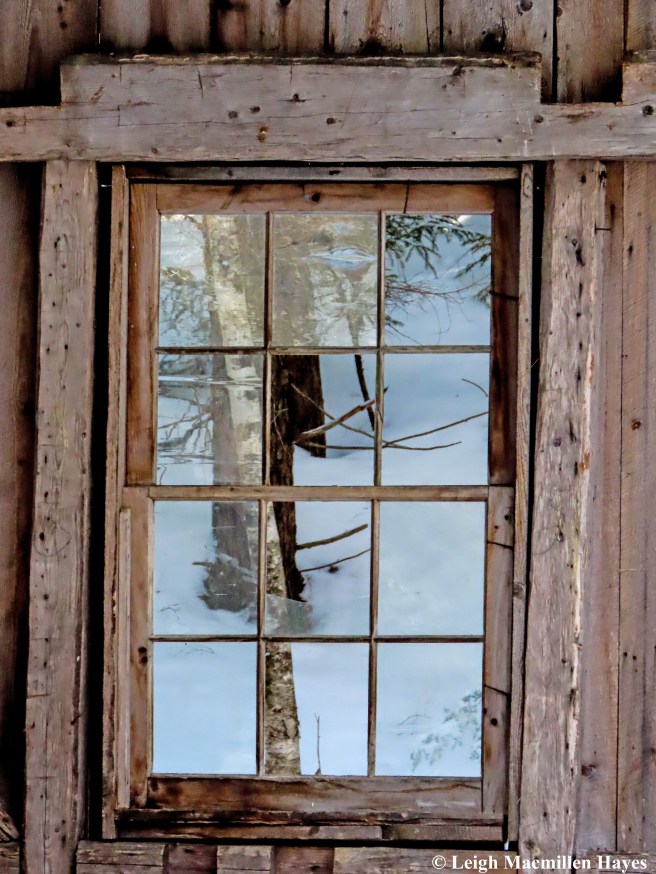 And there were windows to look through at the old Sap House–this one with a few panes missing providing a delightful contrast of the view beyond.