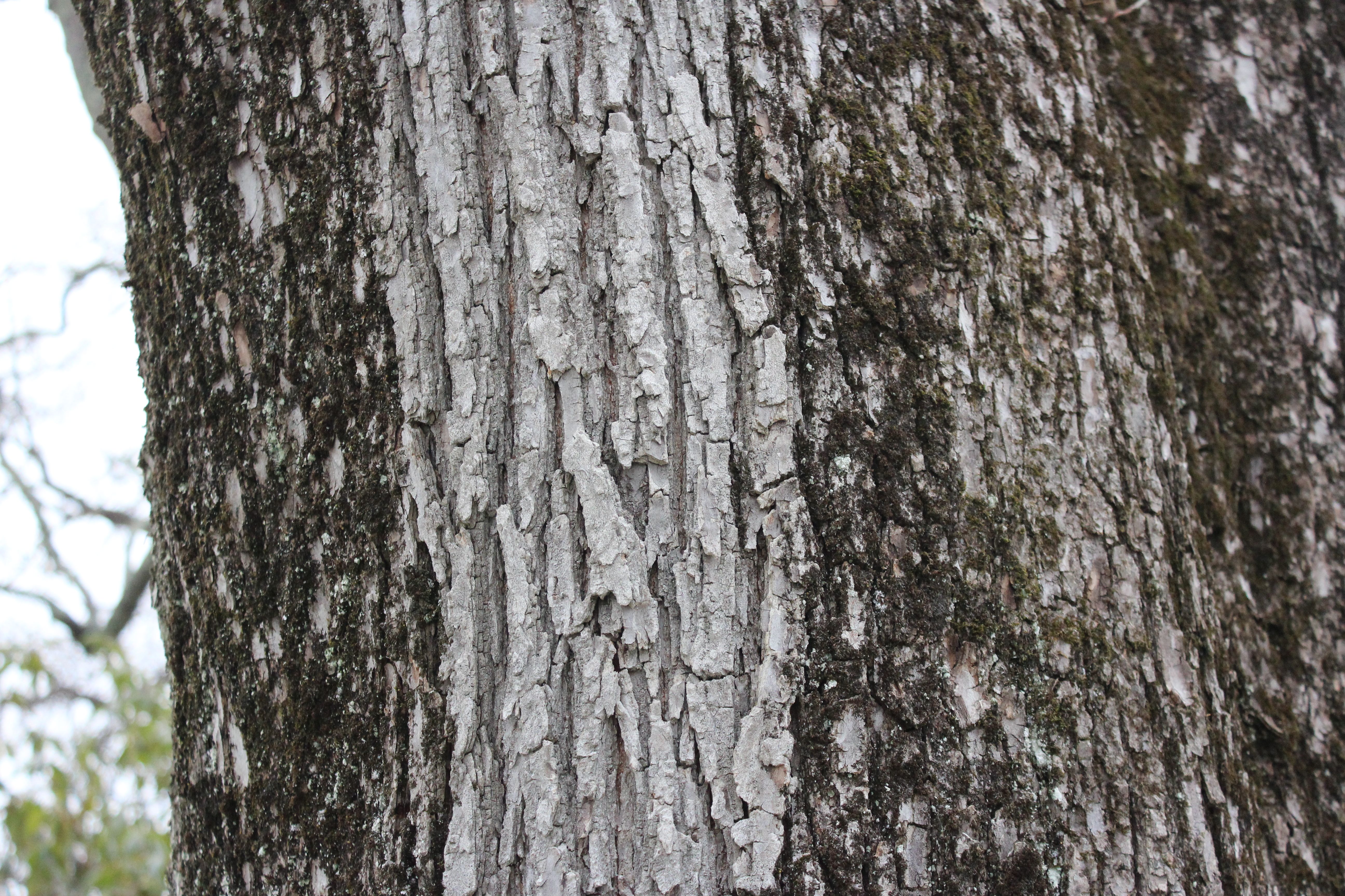 The elm’s light gray bark has furrows with a V or diamond shape, but they intersect at longer lengths than on an ash tree.