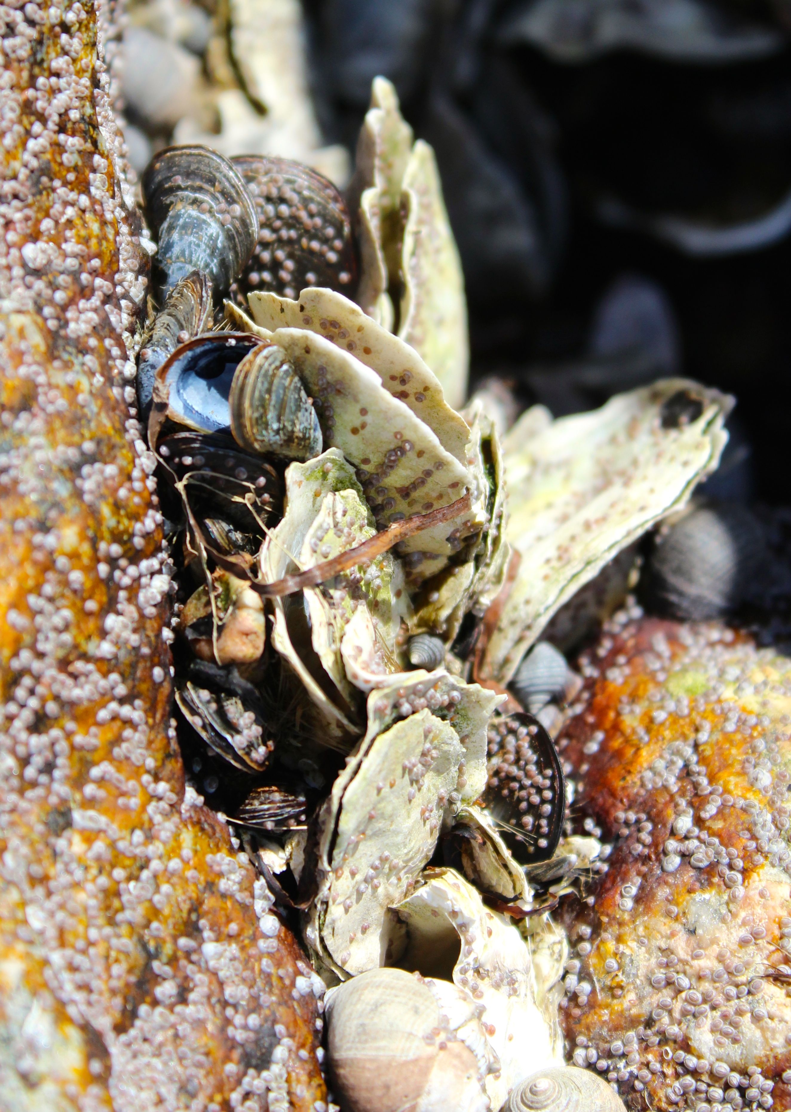 In the same fashion that lichens and mosses grow on the rocks around our western Maine home, providing a home base for others, so do the barnacles, mussels and oysters adhere in their habitat.