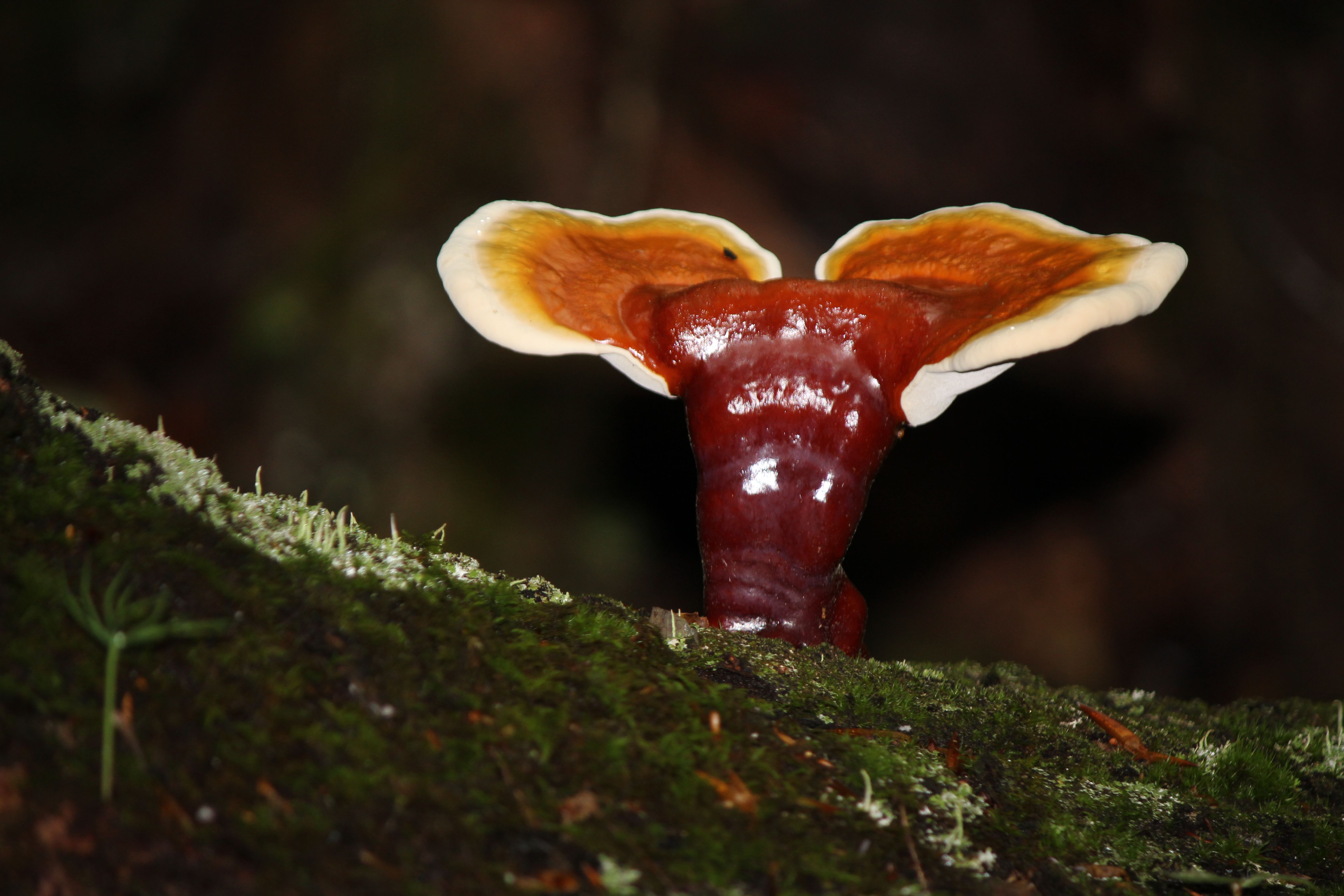 Those fungi eyes continued to search high and low. And waited for us to locate this rather small sample sticking out of a moss-covered rock in the stream.