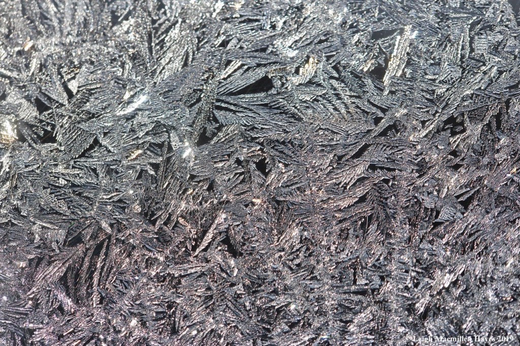 That display began on the first day of March when the frigid morning temperature created a mosaic of color and form on the window behind our bed. Feathery fern fronds and dragonfly wings danced across the glass as the morning light added subtle hues to the frosty collage.
