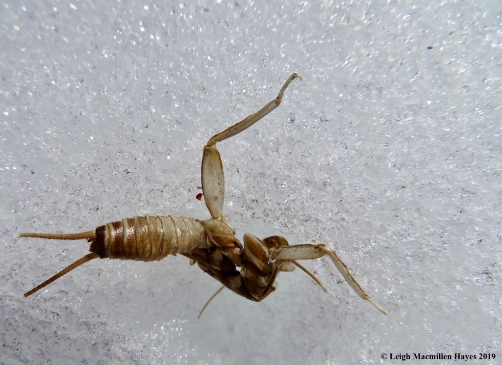 The exoskeleton had belonged to the larval stage of a winter stonefly such as this one that crossed the snow as they do.