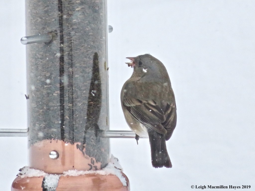And a Junco who seemed to admire either its reflection or the prospect of plenty of thistle seeds.