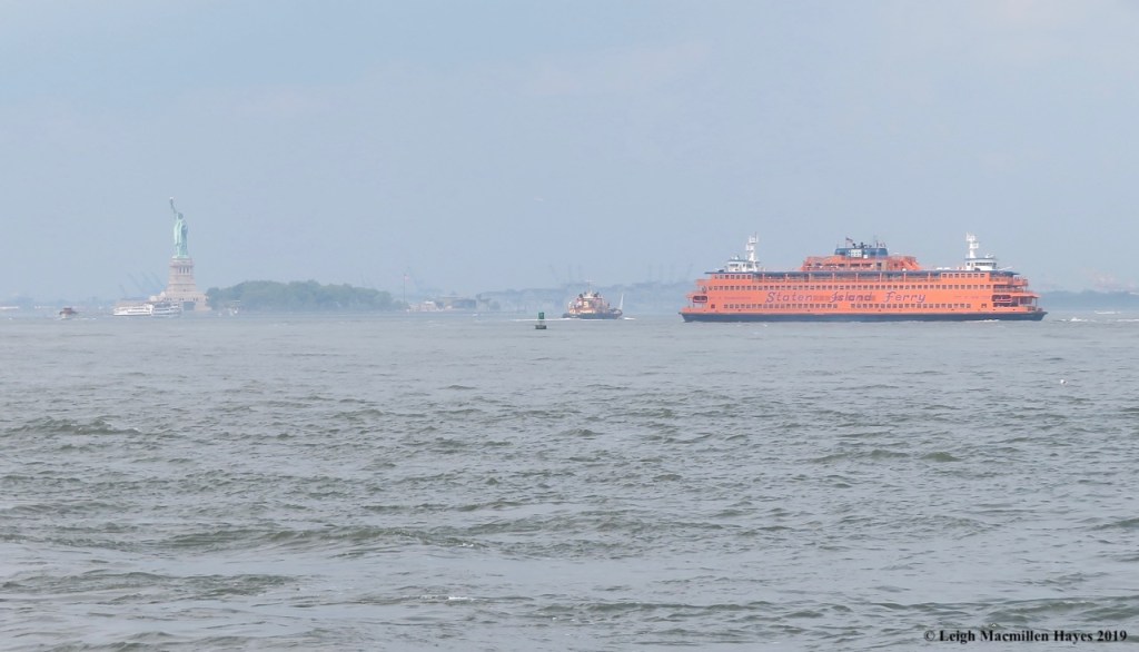 There were a variety of gulls as well, plus sparrows, and of course, the exotic pigeons, all enjoying life along this place where the Statue of Liberty welcomed us from her distant, yet ever distinguished pose upon Liberty Island.