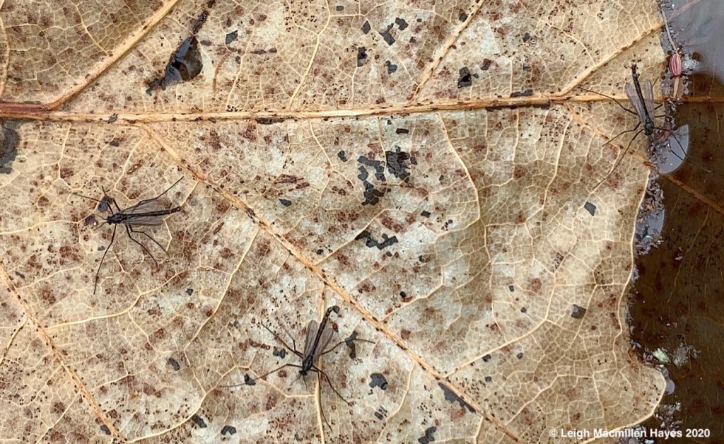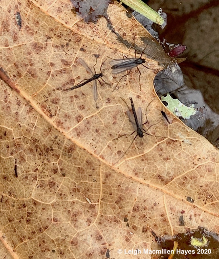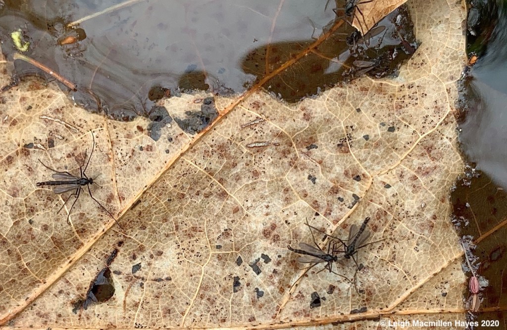 Although from what I noticed today, there wasn’t much flying taking place. Instead it seemed like the oak leaf that floated on the pool’s surface served as a place for males and females to get to know each other, much like my friend Midge may have met her boyfriend, Alan.