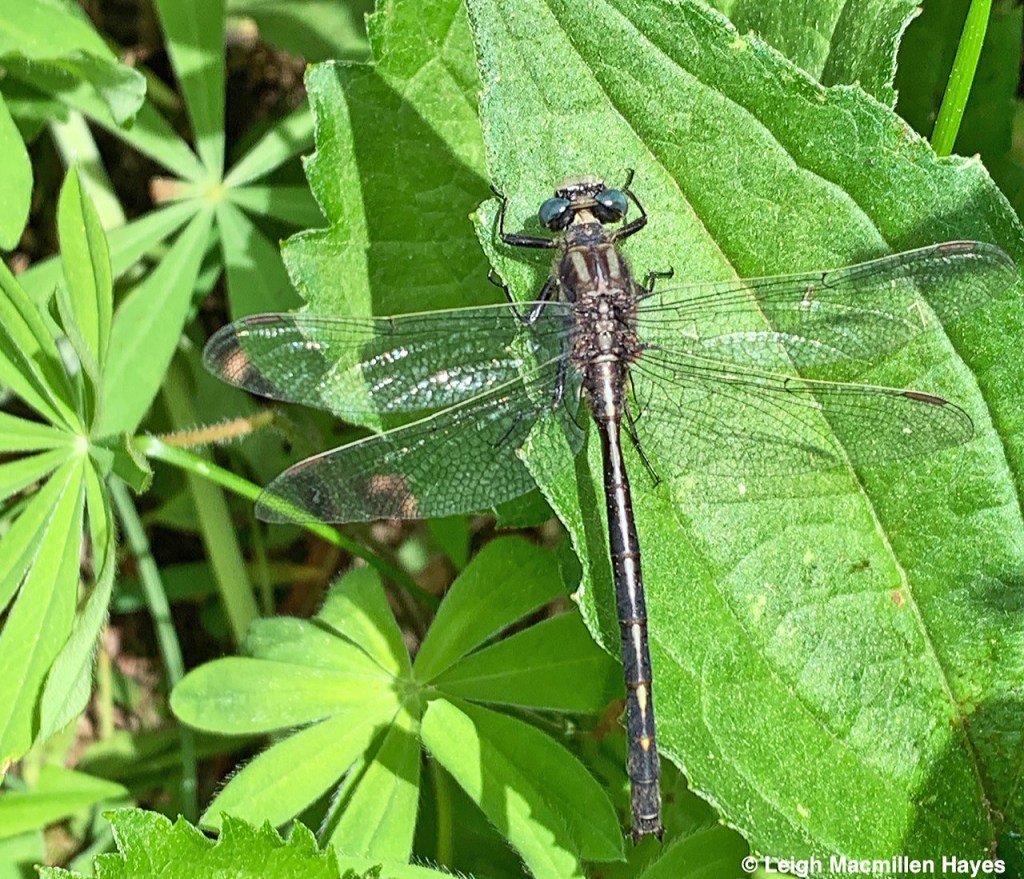 Upon another leaf, we spotted another clubtail, and I assumed it was the same species as the first dragonfly that had greeted us. Though I called both Sir Lancelot, for I thought perhaps they might be Lancet Clubtails, I knew that I’d have to figure it out back at home. If I’m not mistaken, because there are no markings on the last two segments (segments 9 & 10 in dragonflyspeak), rather than an Arthurian legend, this was actually an Ashy Clubtail.