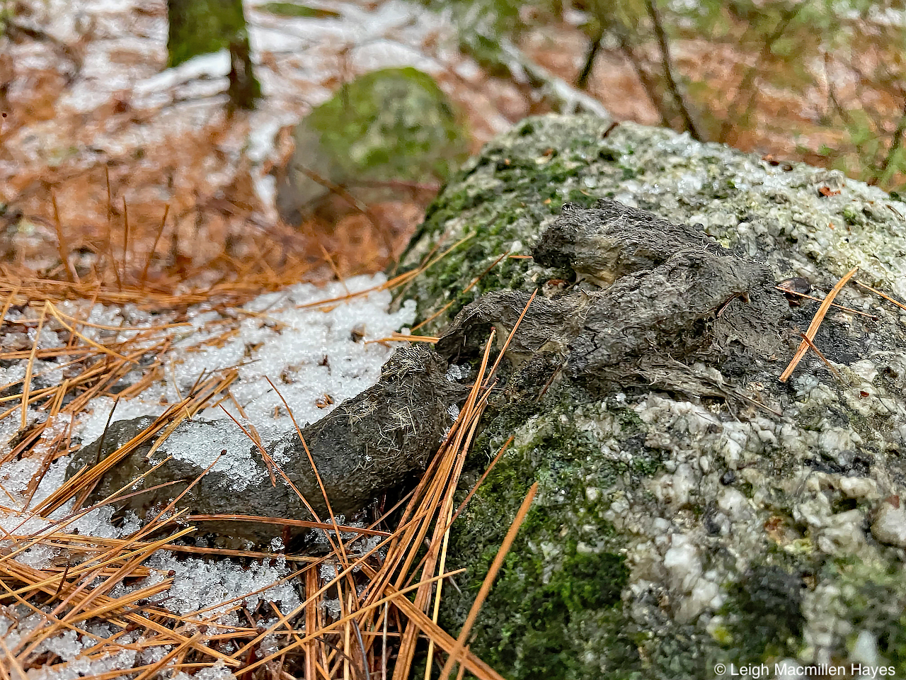 Upon another rock, another midden indicated an earlier meal consumed, perhaps in a safer place as maybe the barbed wire added some safety.