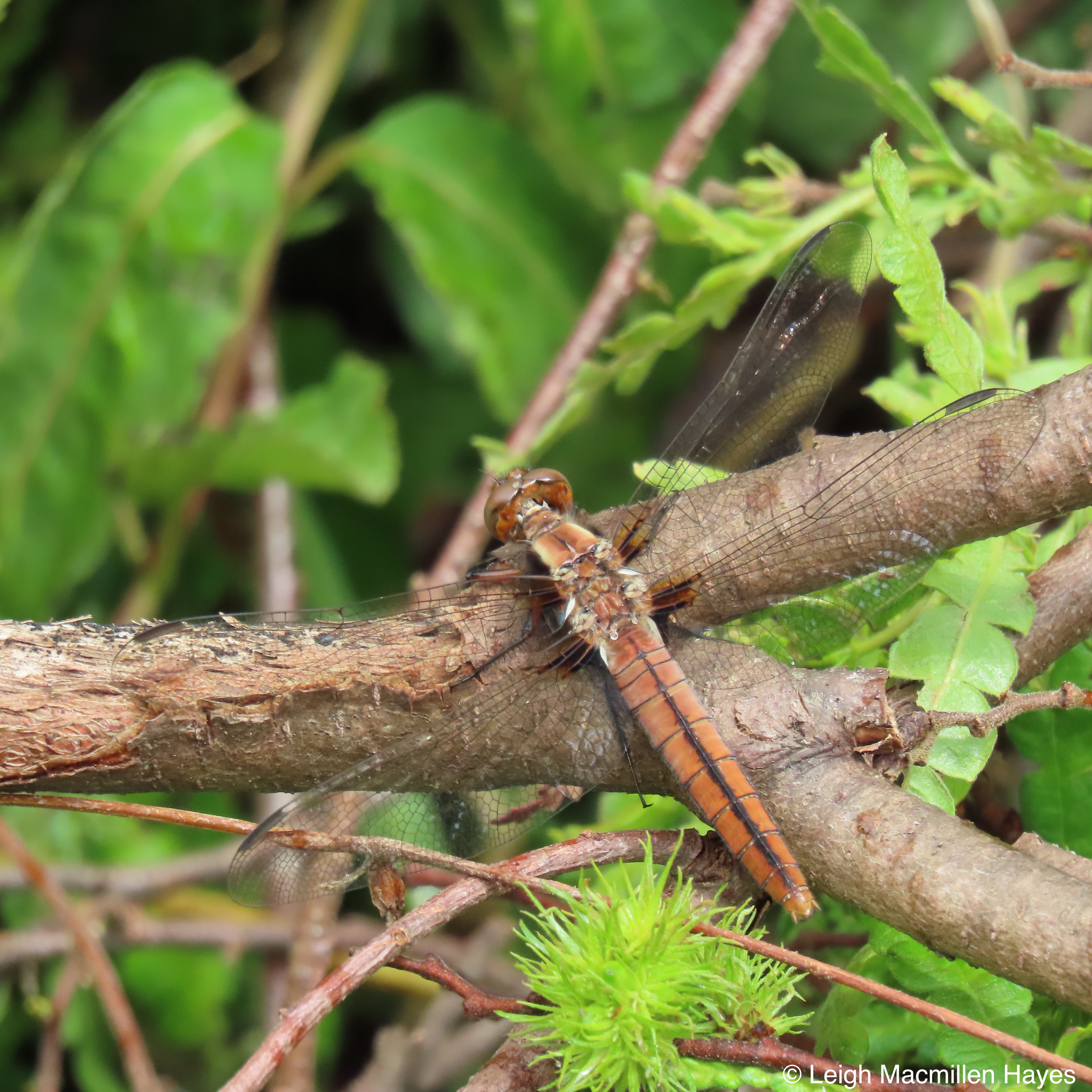 One of my favorite skimmers is the Chalk-fronted Corporal, who earned its name for the corporal stripes on its thorax. And maybe it’s the old teacher in my blood that appreciates good old chalk. The fun thing about this species is that it’s usually found in groups, and you might not see them until you take a step and then they fly three steps forward, repeating this behavior throughout your entire journey in their neighborhood. They are also great posers.