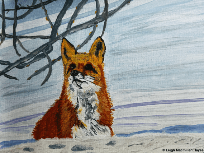 And this is one of the Red Foxes who frequent our yard. In My Art Gallery, there are two more attempts, both in watercolor while this one is with gouache paints. Experimenting is fun.