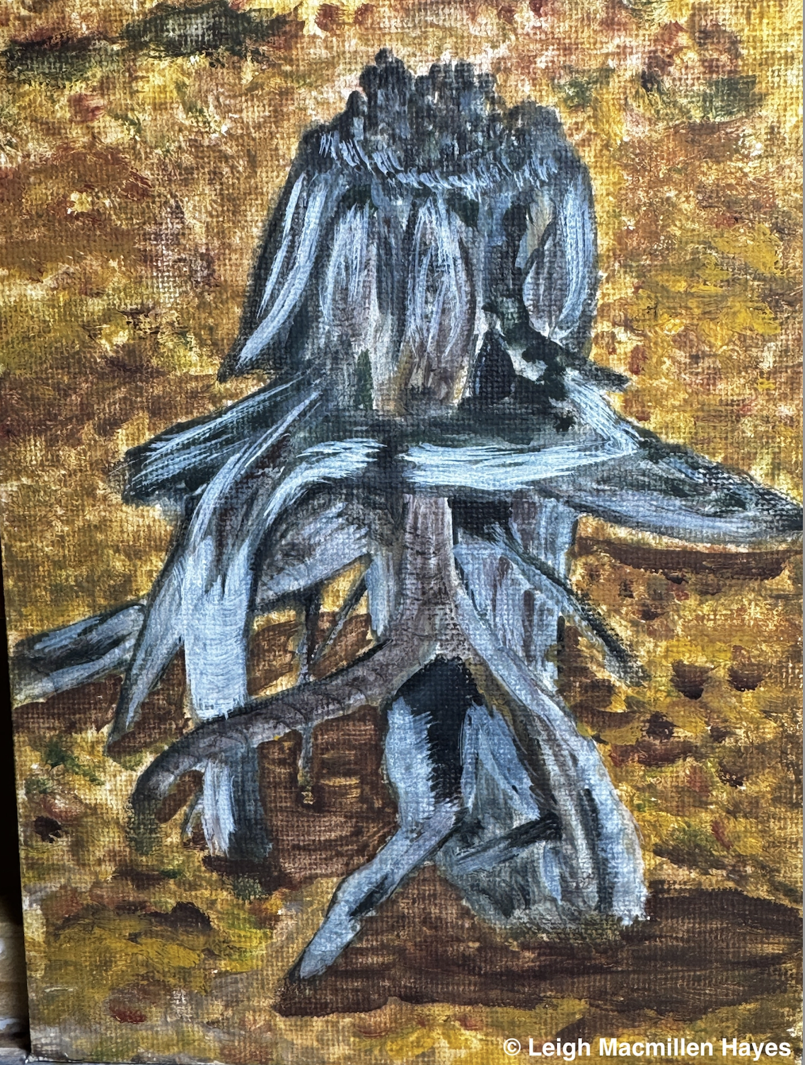 I like this one because I like the subject. I used a matted board to paint it. The stump is beside the Saco River in Conway, New Hampshire.