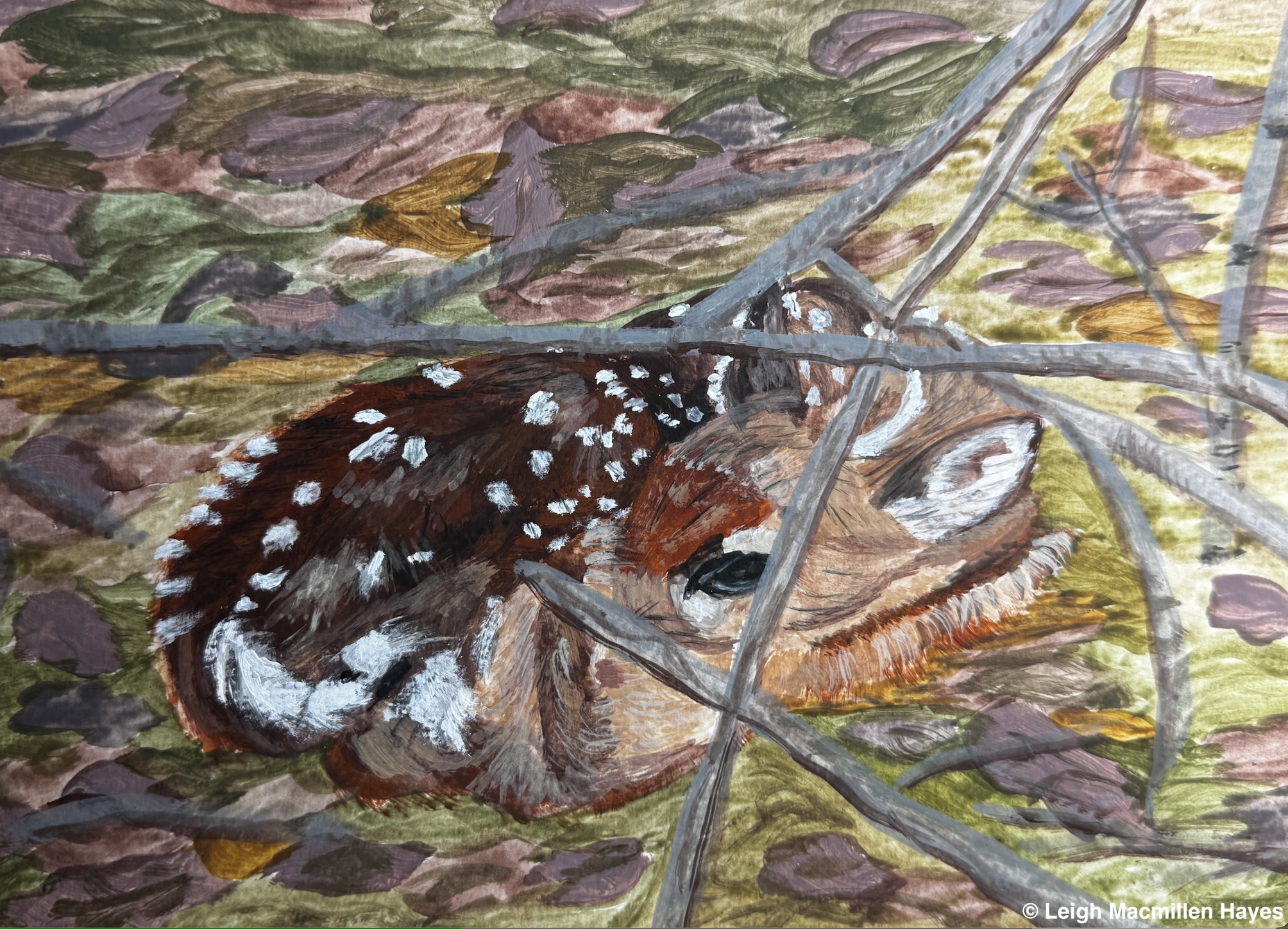 This next one will forever evoke the memory of my friend, Faith, who passed away this summer. We were on a Lakes Environmental Association walk at Holt Pond when we all “spotted” this fawn quietly waiting for momma. Quick pics and then we moved away.