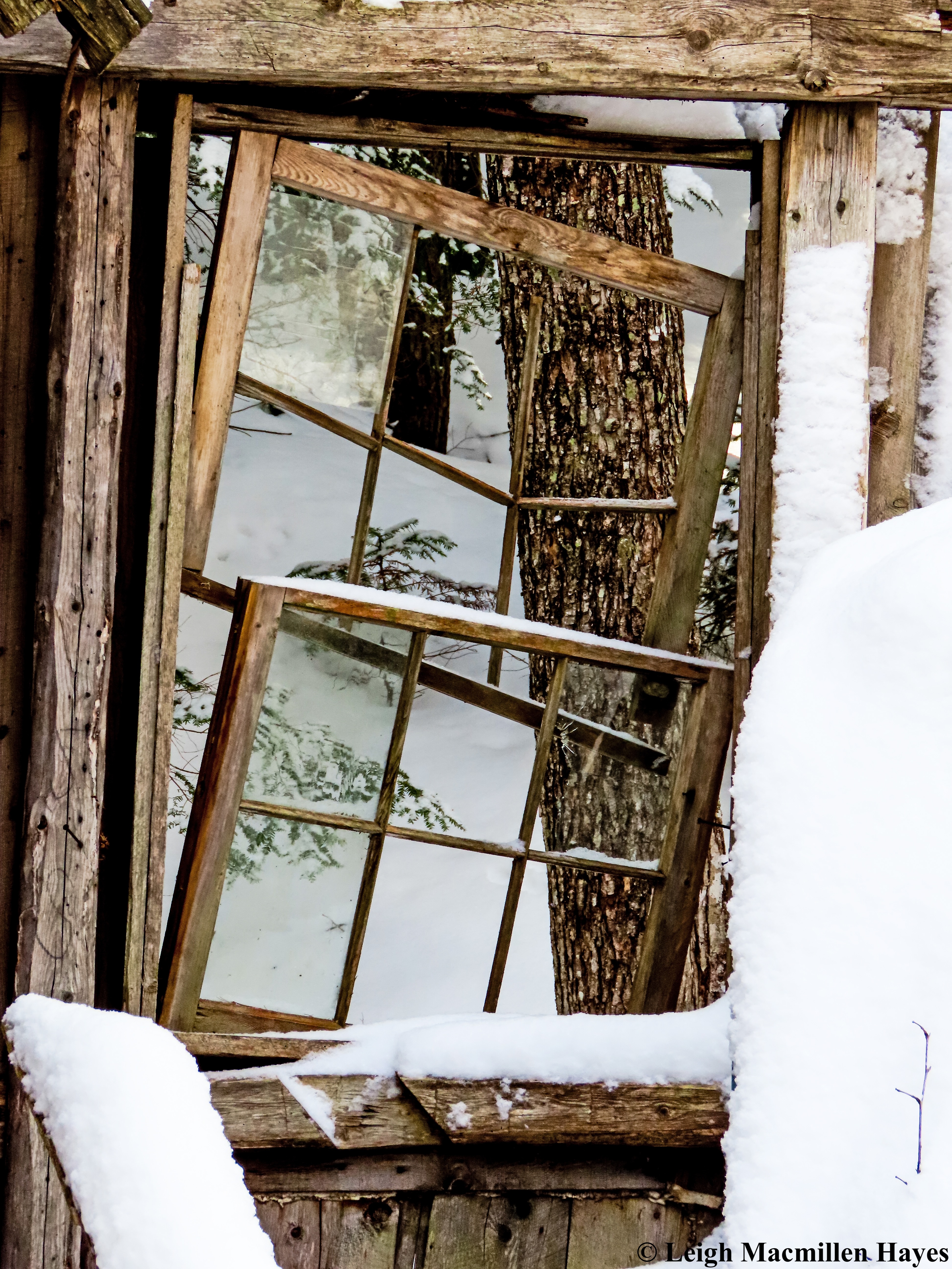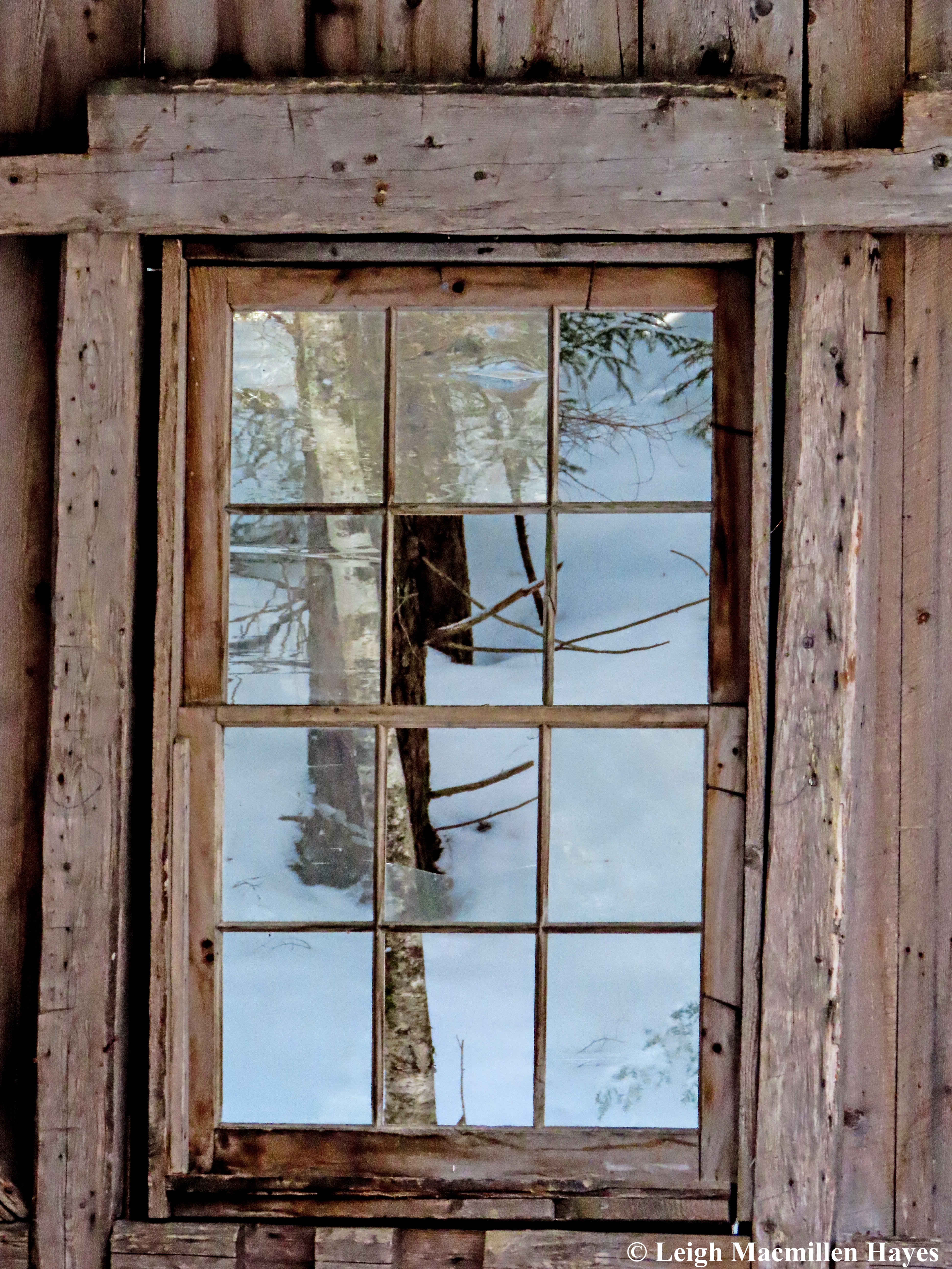 And there were windows to look through at the old Sap House–this one with a few panes missing providing a delightful contrast of the view beyond.