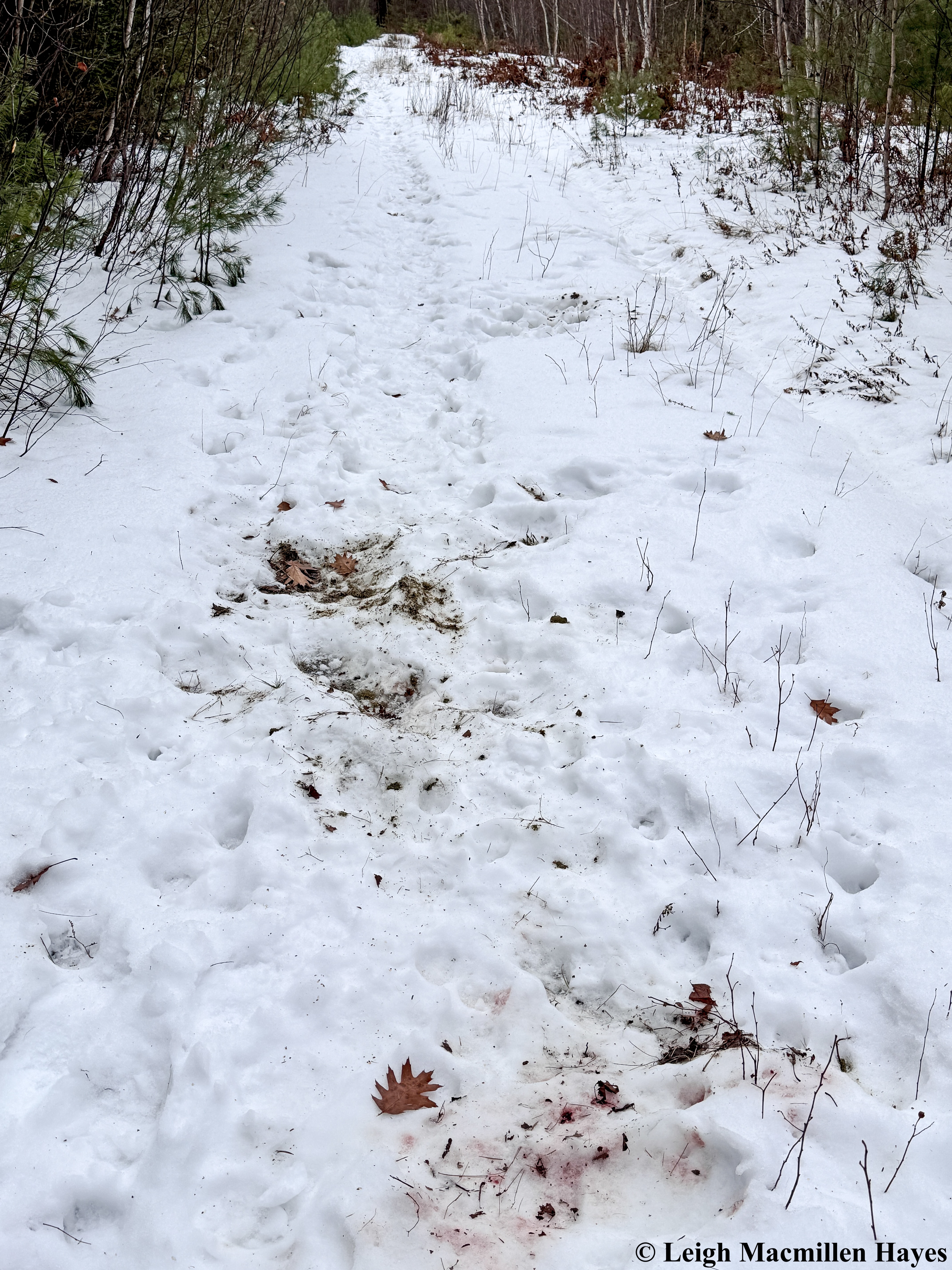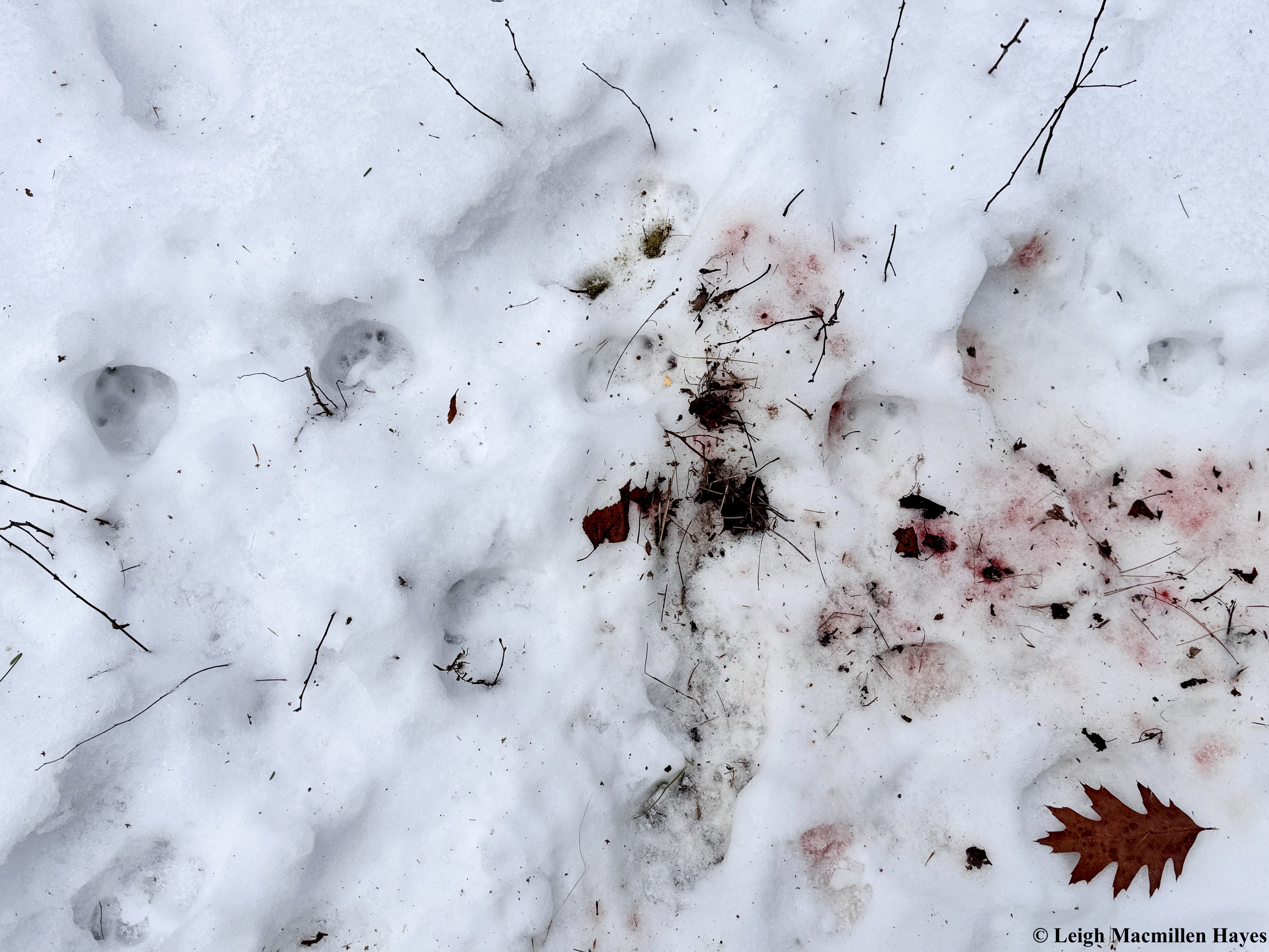 I never did figure out what gave up its life and blood for this meal, but by the prints surrounding it and the digging that took place, I knew the creator–who had visited its pantry to enjoy a meal.