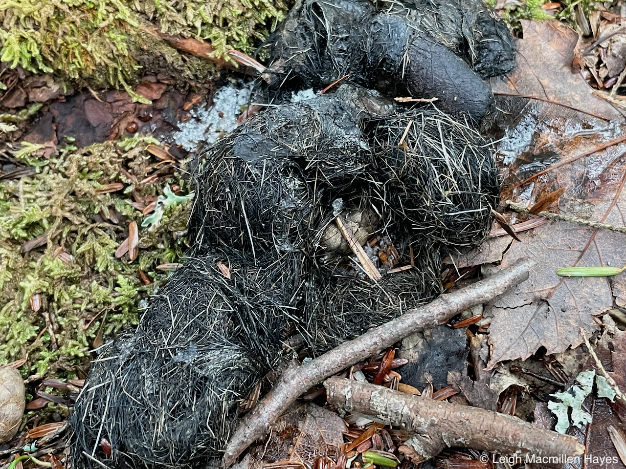 Future scats may be full of hair from the prey . . . or even a different form of hair, that of the Porcupine’s quills. That’s exciting because we can’t always be certain of the exact meal, but sometimes clues in the scat expand the story.
