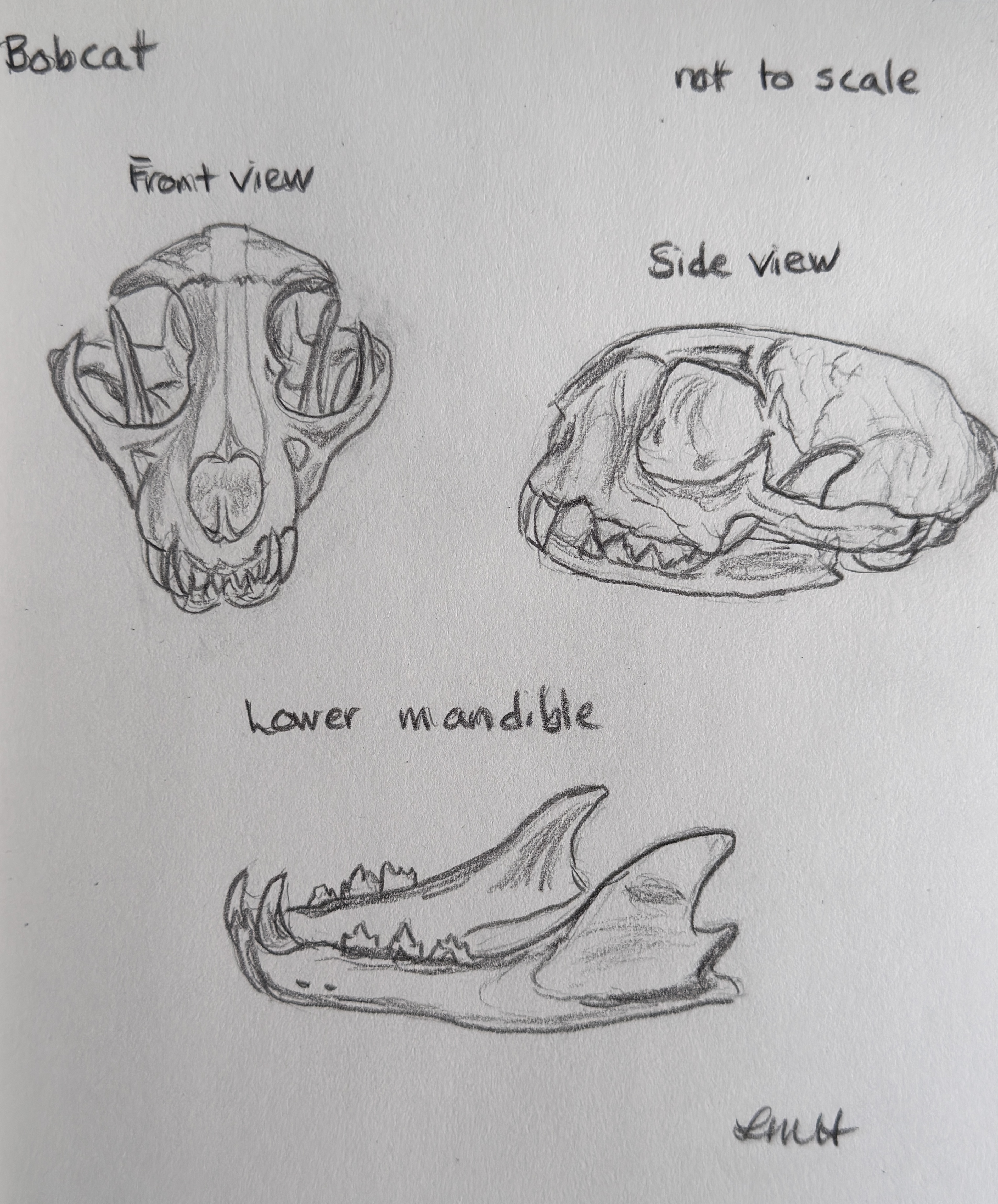 I’m trying to honor the Bobcat with a painting (and by sketching the skull). It’s a work in progress.