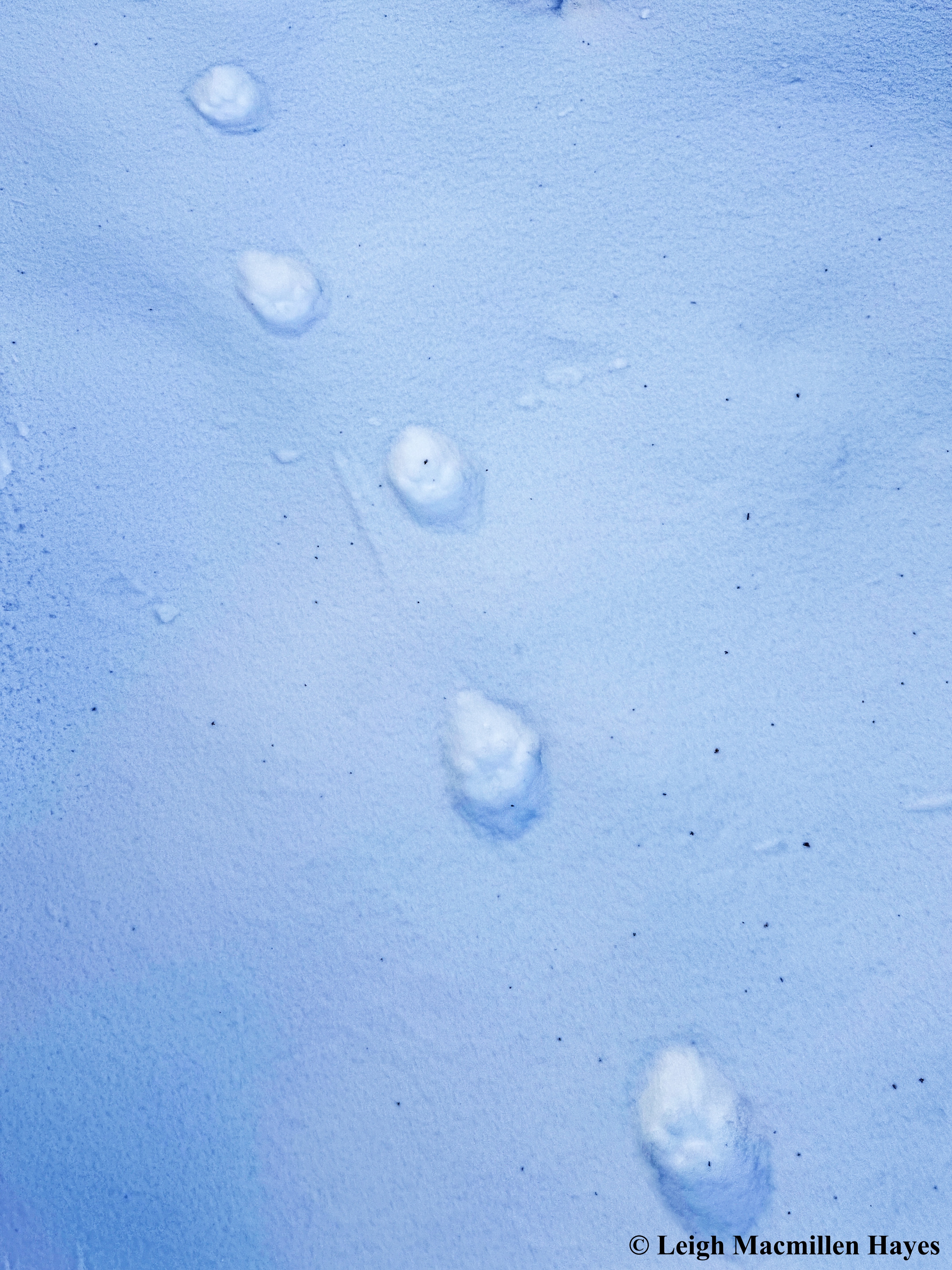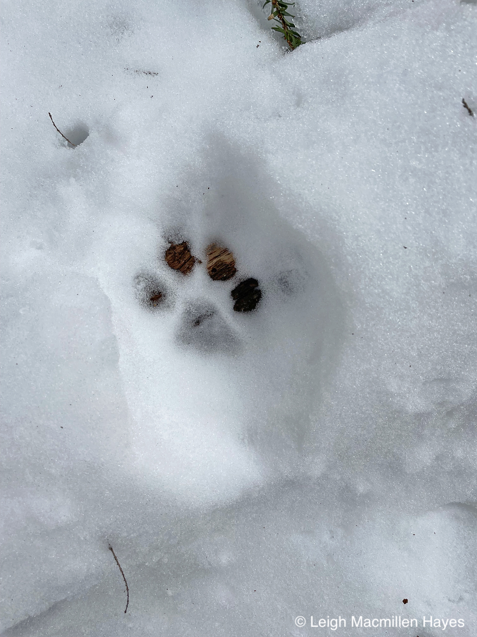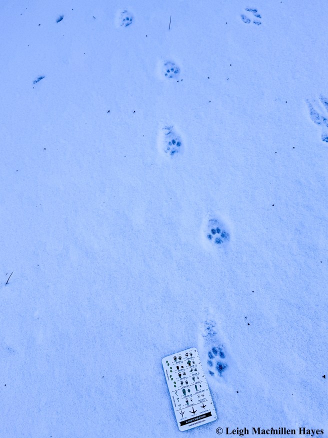 Despite the fact that I don’t often see them (they are nocturnal and I’m not so much), they leave behind prints and tracks that have led me on many an adventure, sometimes alone or in the company of others, trying to figure out the story of their behavior.