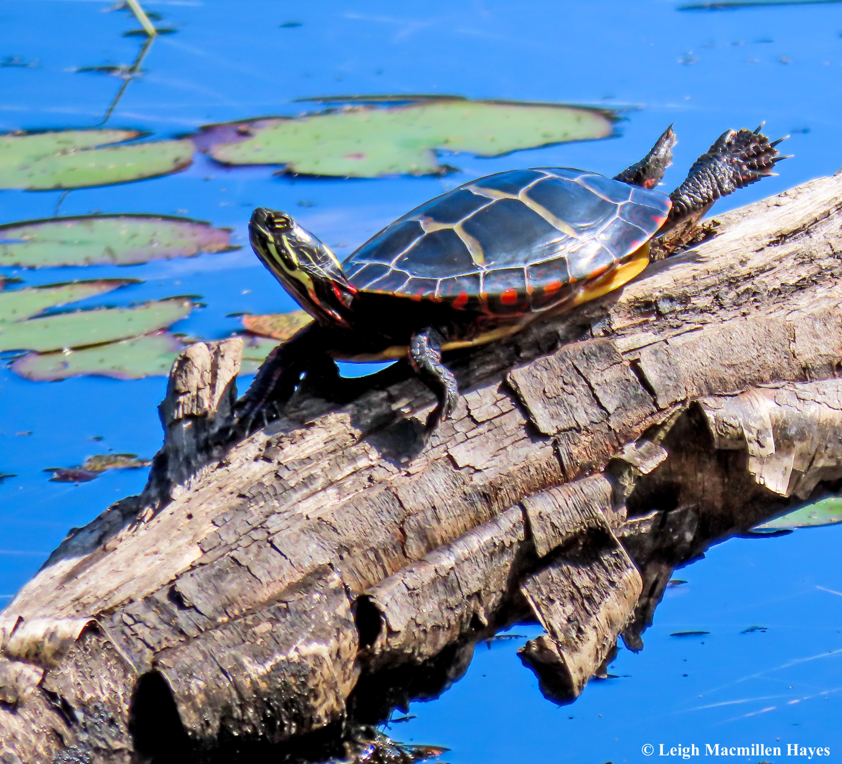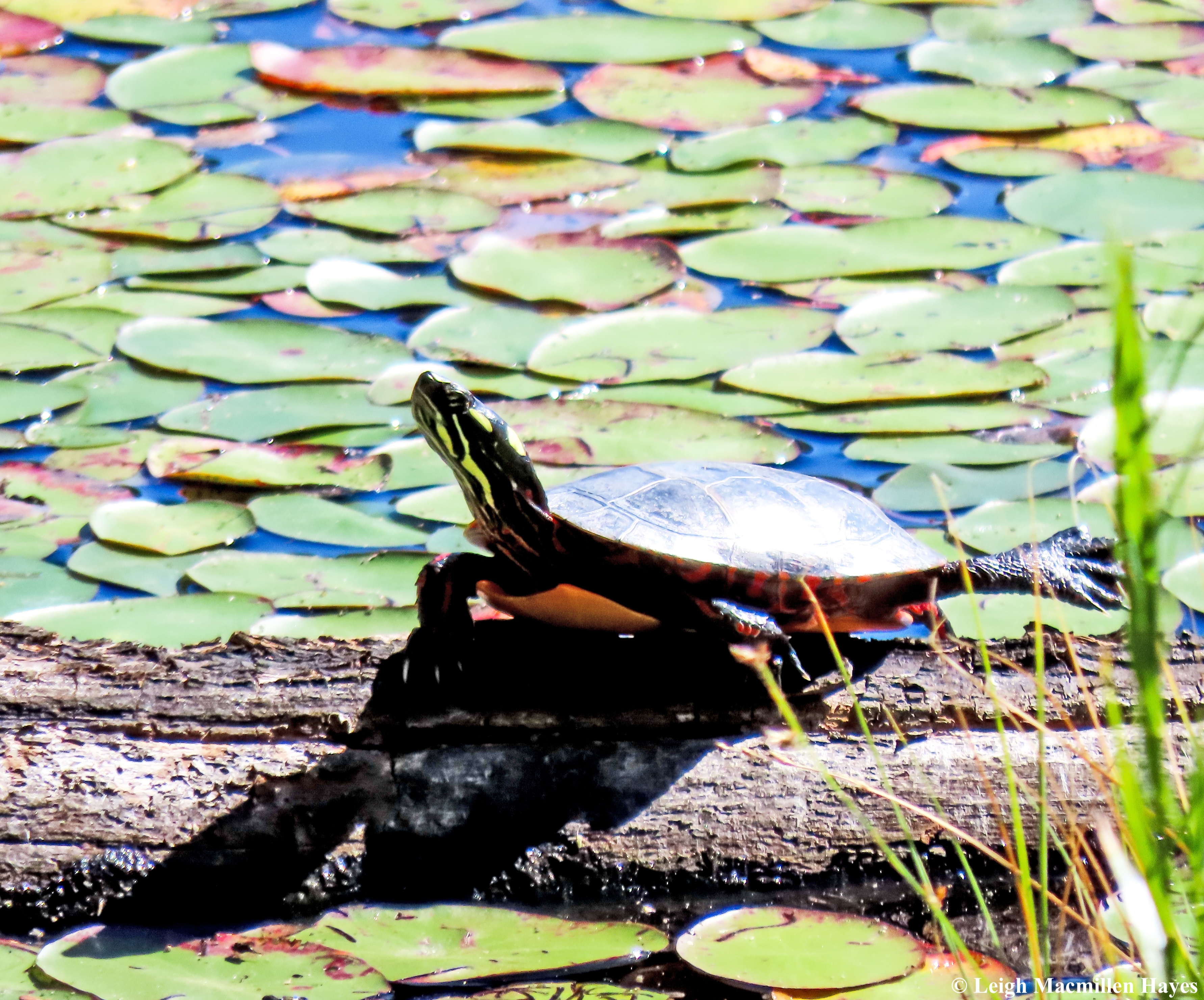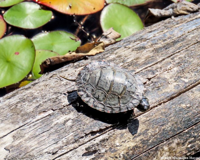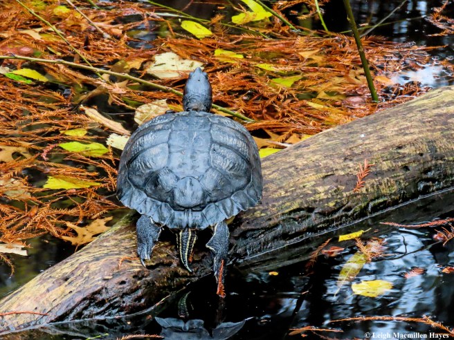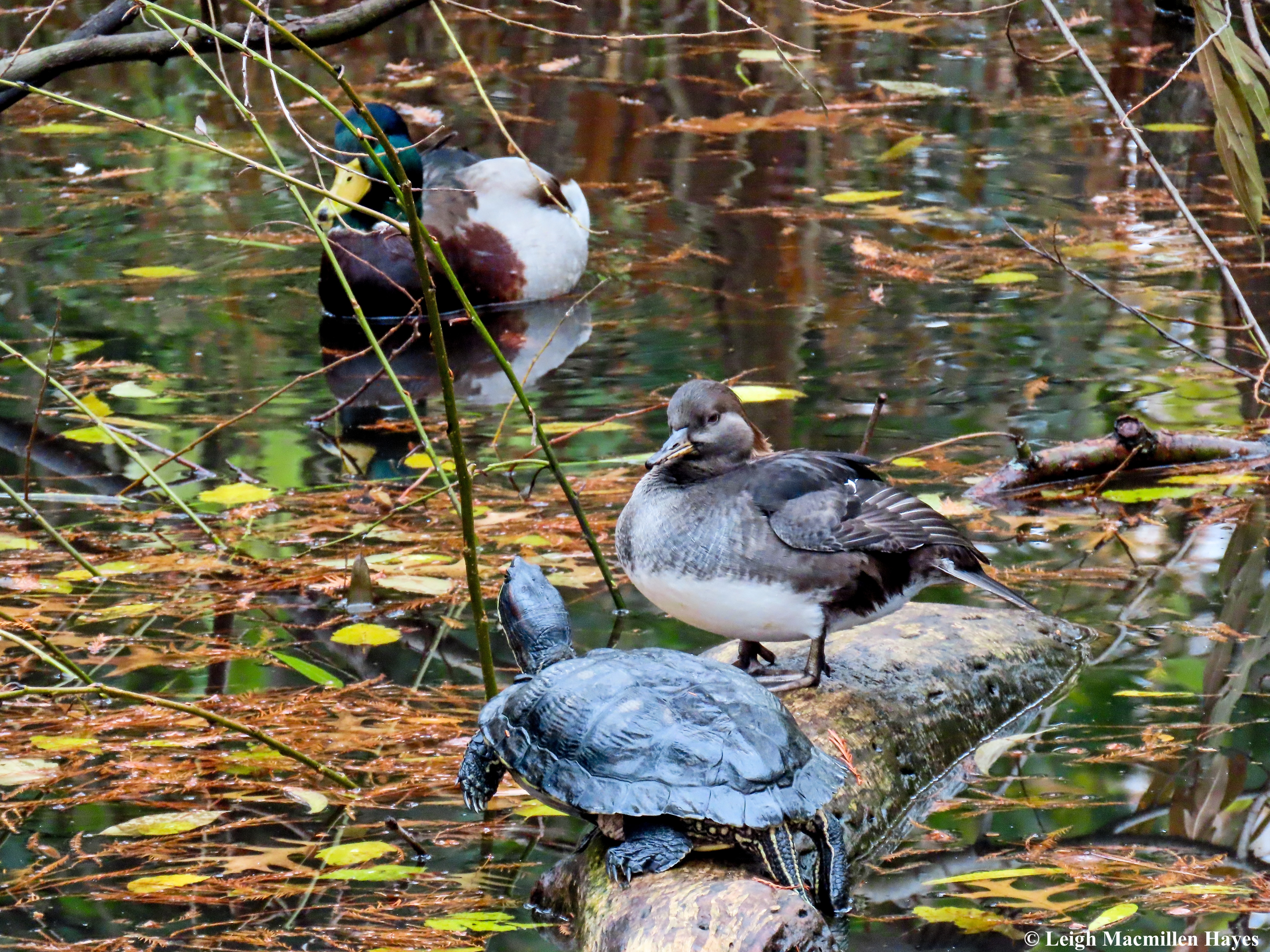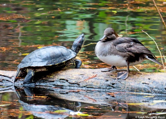 His mate, on the other hand, stood upon a log with a Red-eared Slider and we watched in bewilderment because neither one seemed concerned about the other.