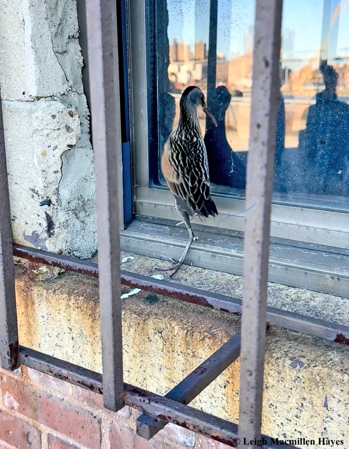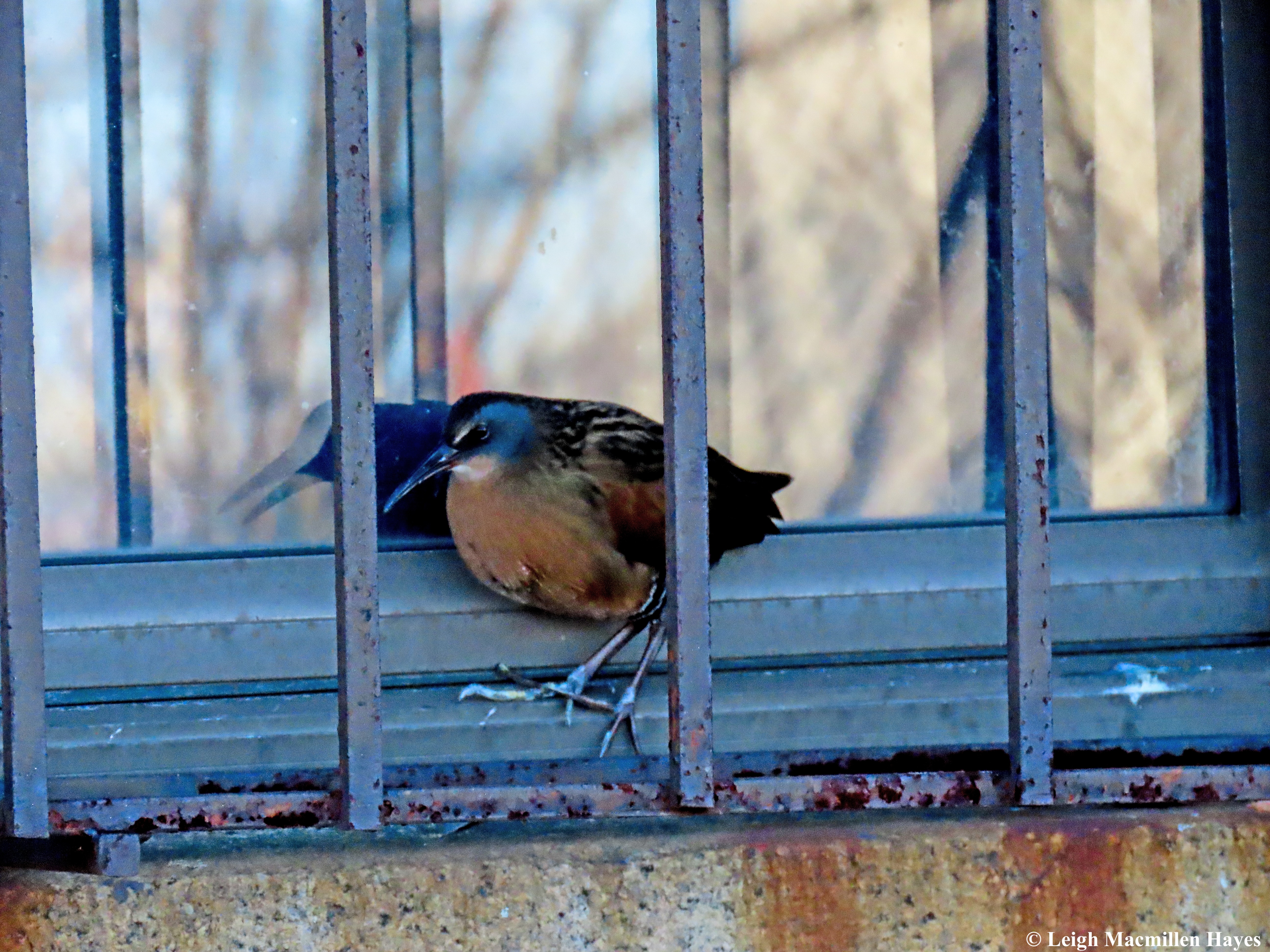 On another day in another place, a place next to where it should have been, we unexpectedly spotted a Virginia Rail. Yes, we were beside the East River in Wallabout Bay, but for some reason this most secretive of birds ended up behind the grates guarding a window.