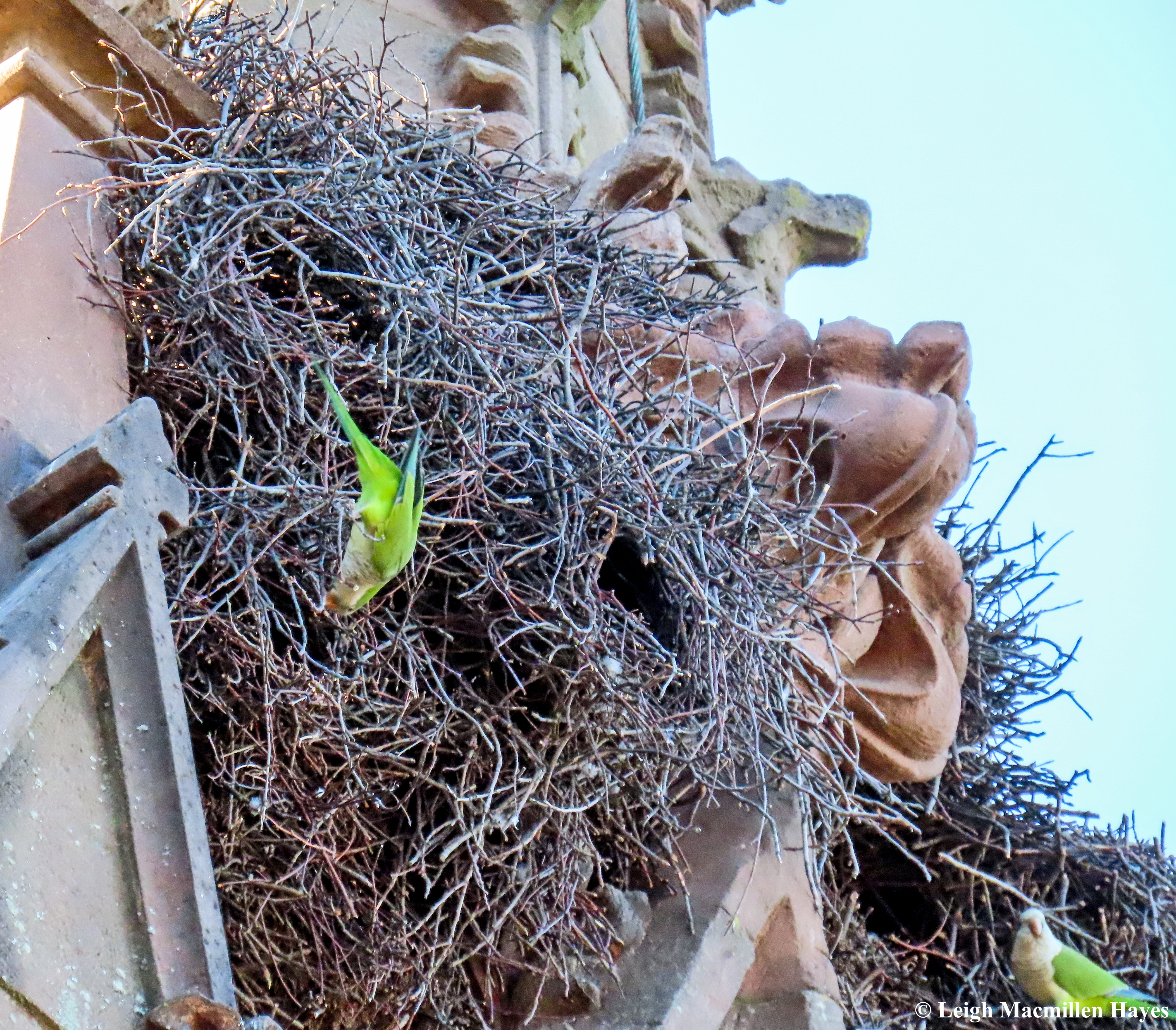 And then, much to my delight, one flew in: a Green Monk Parakeet.