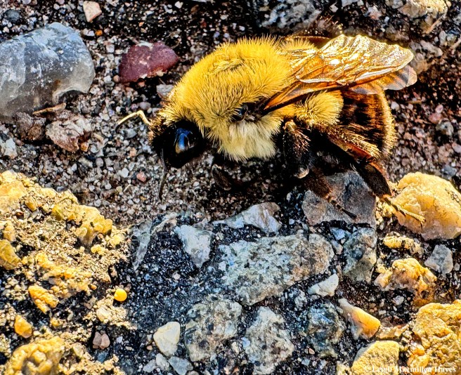 And finally, much to my utter surprise, we spotted a Queen Bumblebee stumbling along in the crack of a paved pathway, probably seeking a place to overwinter moments before the sun went down.