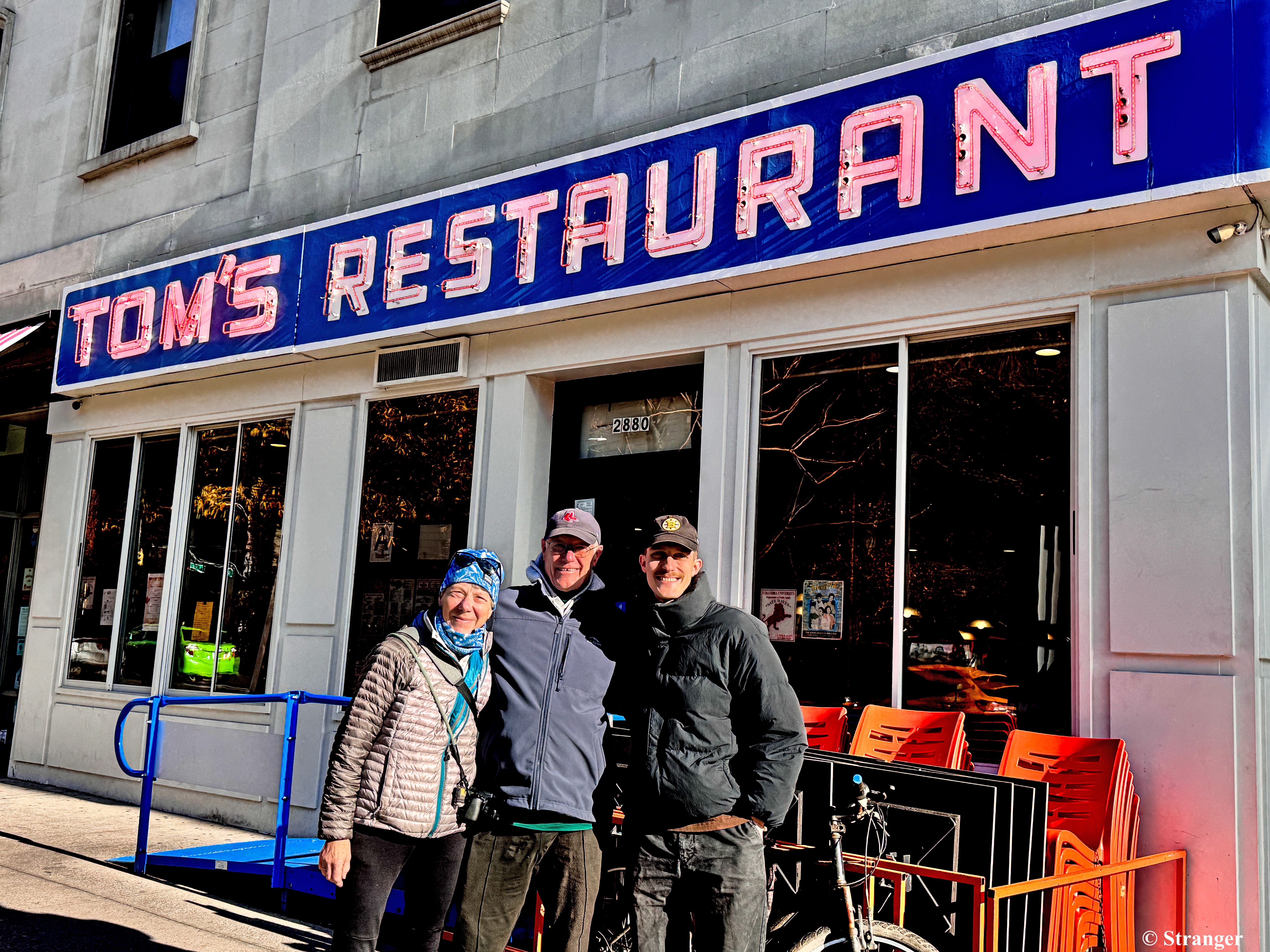 We sat at the counter where P posed below Kramer and felt like we could hear Jerry and George and Elaine in a nearby booth.