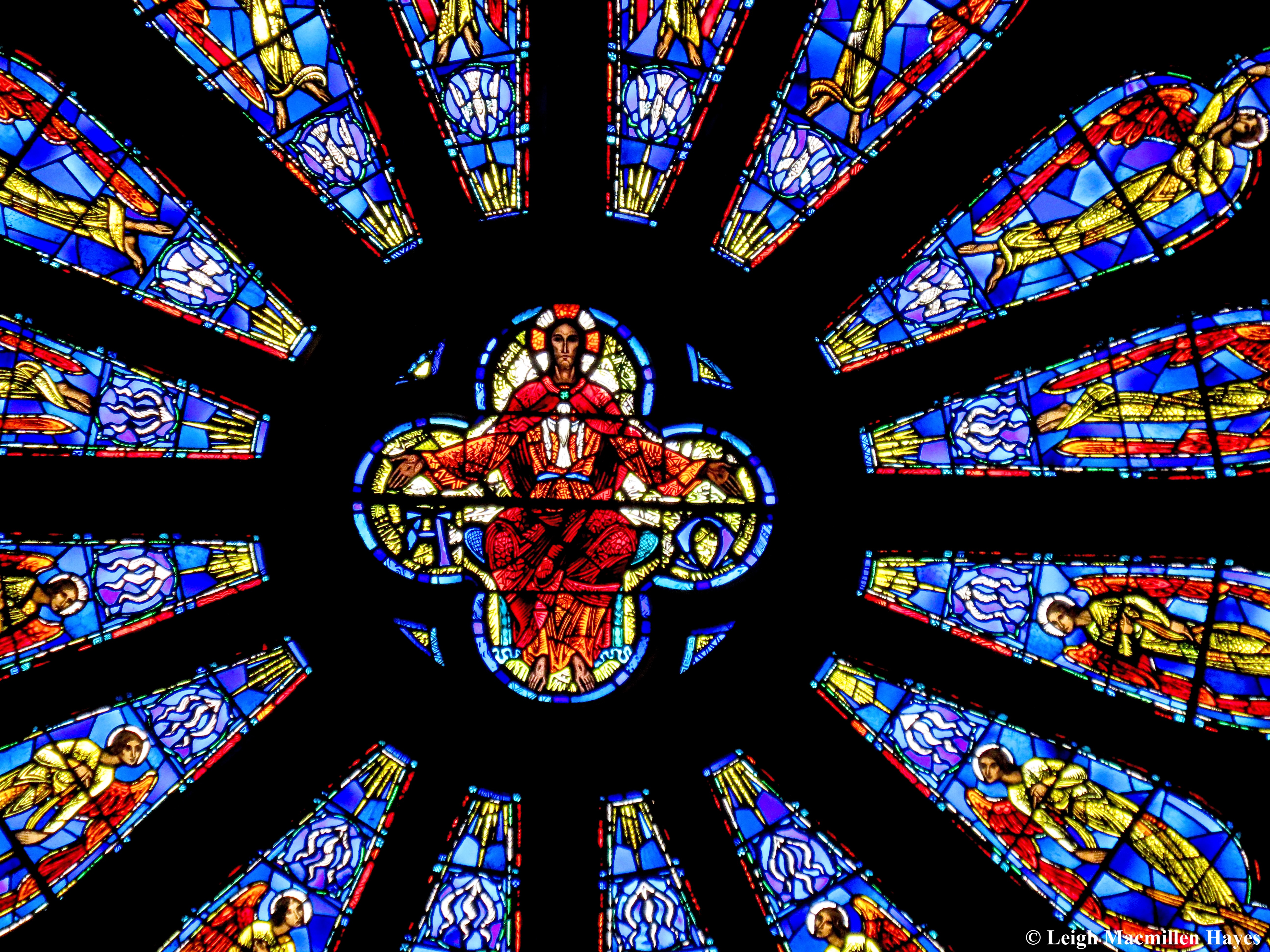 In the back of the Nave, the Great Rose Window is forty feet in diameter, with Jesus being 5.5 feet tall, despite how small he looks from the floor below. It’s the third largest rose window in the world and is made of over ten thousand pieces of glass, mind-boggling as that is.