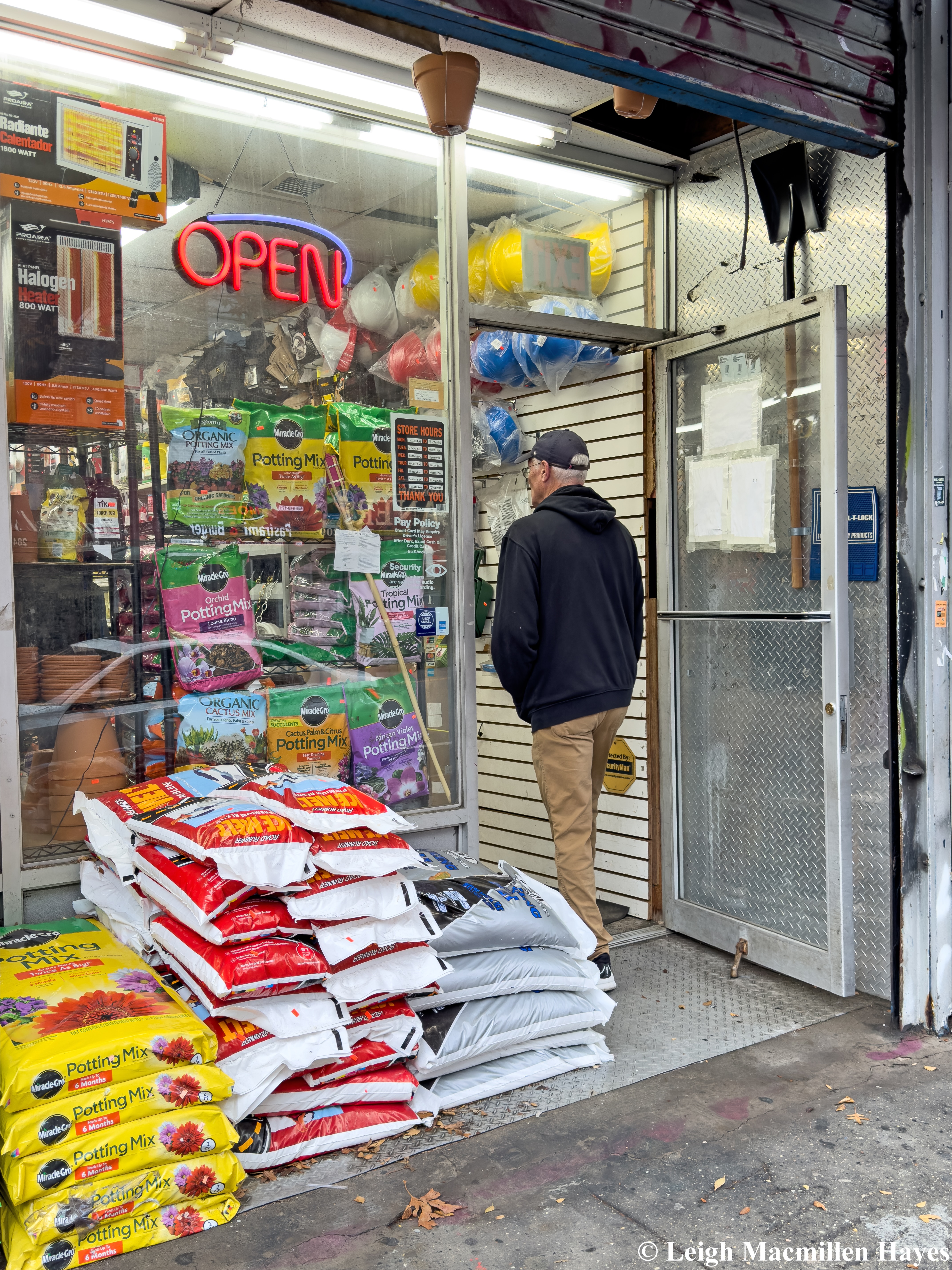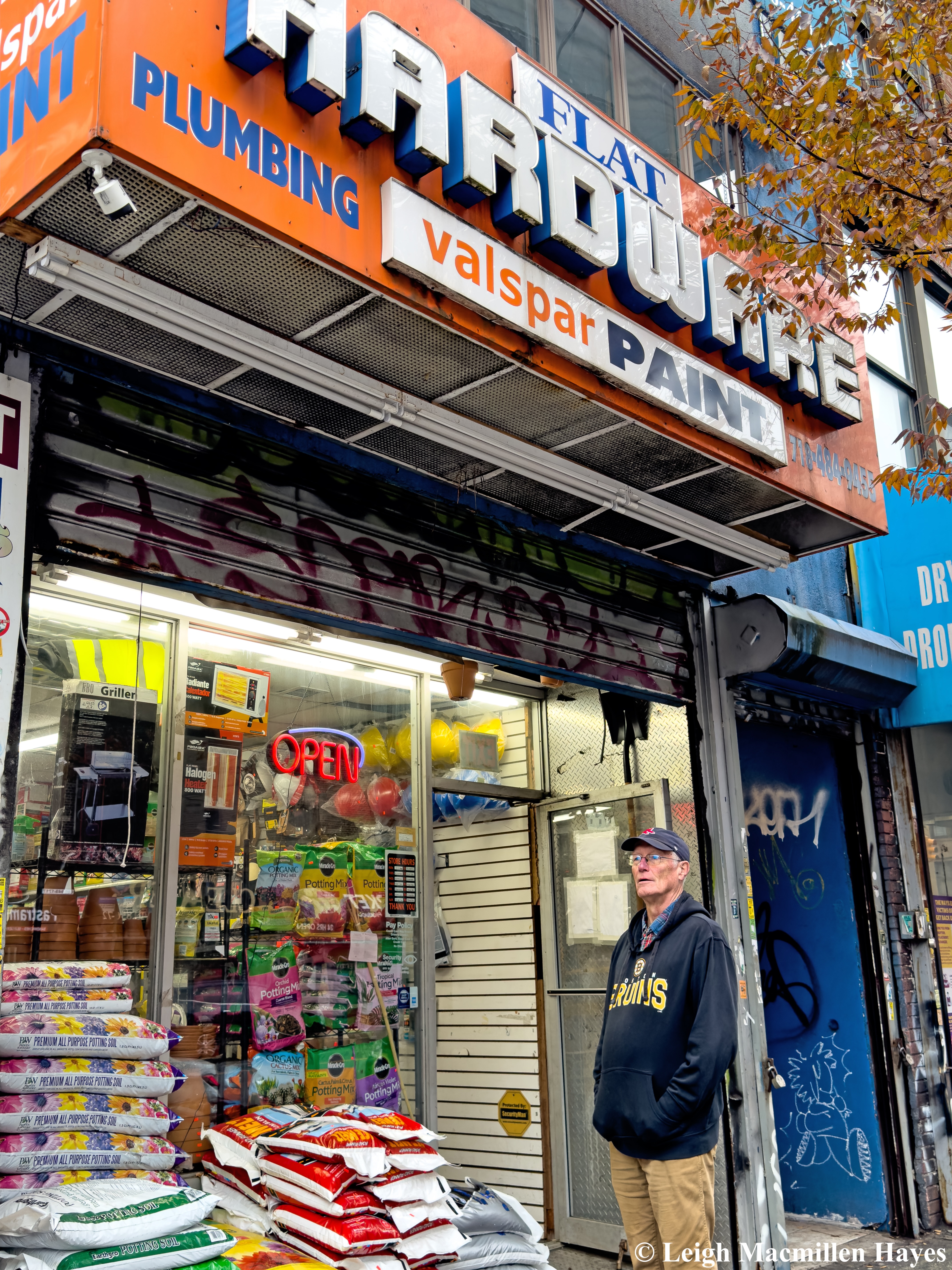 He said he wasn’t going to go in, but you know that he did. It was a quick loop up one aisle and down the other, for so narrow was the store, but oh was it packed with merchandise–every square inch in use as is the city way.