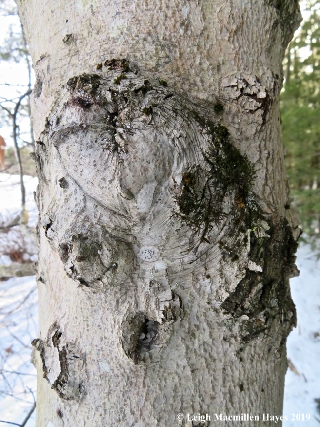 There were some decorated with cankers from beech scale disease that could have passed for ornamental faces.