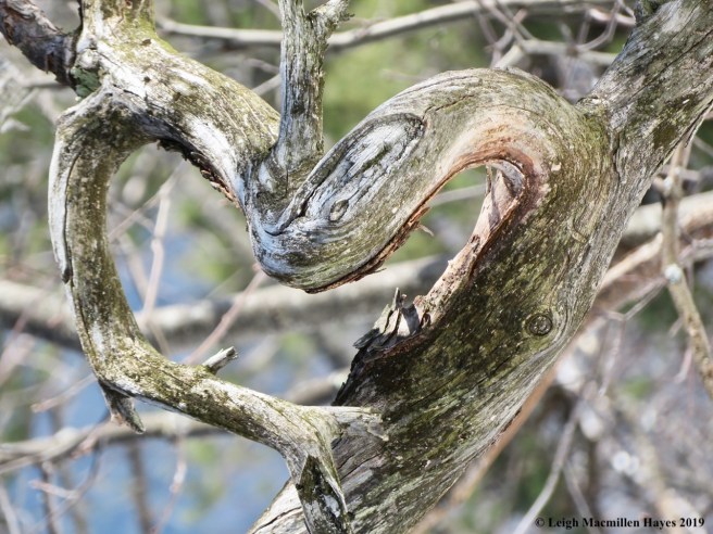 I took the liberty of turning a photo of a lower branch 90 degrees because I could see the face of the tree spirit reaching out as it formed a heart. It is February after all.