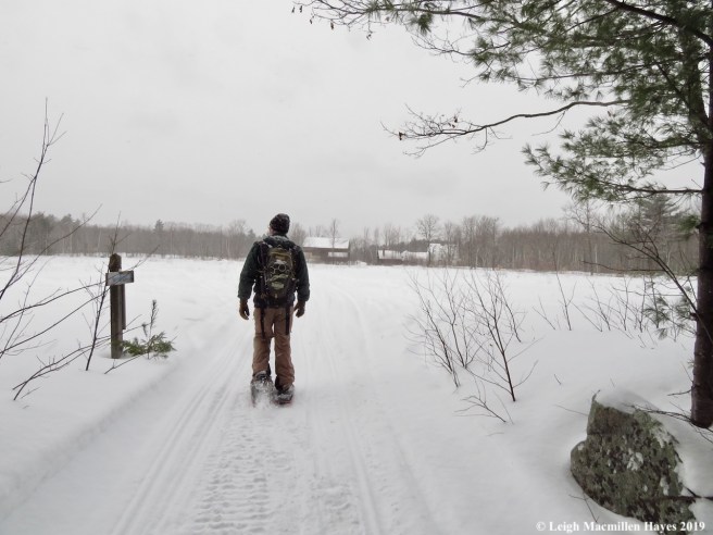 Because it was snowing today, we decided to stay closer to home and visit a property we hope Loon Echo Land Trust will soon own. It surrounds the Bridgton Historical Society’s Narramissic Farm and is one of our favorite places to wander in any season.