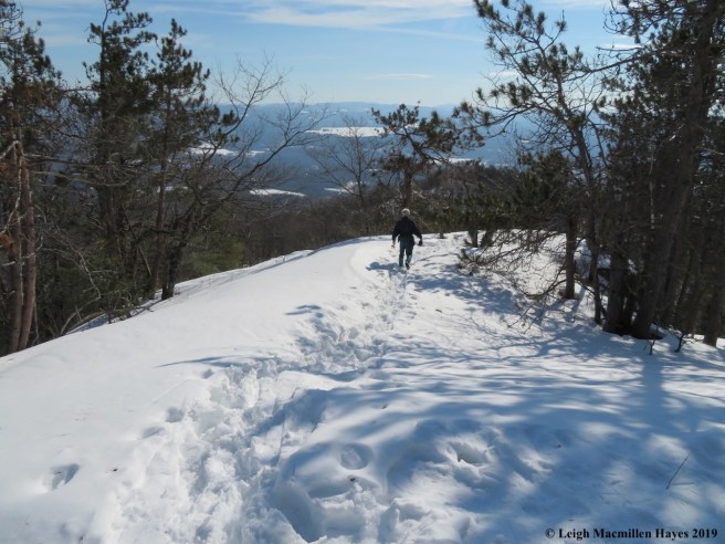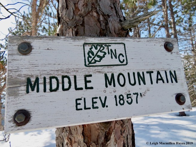 We also weren’t sure of our footwear until we arrived at the parking area and saw the well-packed trail. Our choice–micro-spikes over snowshoes. We only hoped that when we reached the intersection of the Middle Mountain Trail and the Connector Trail, we wouldn’t regret our decision. But time would tell.