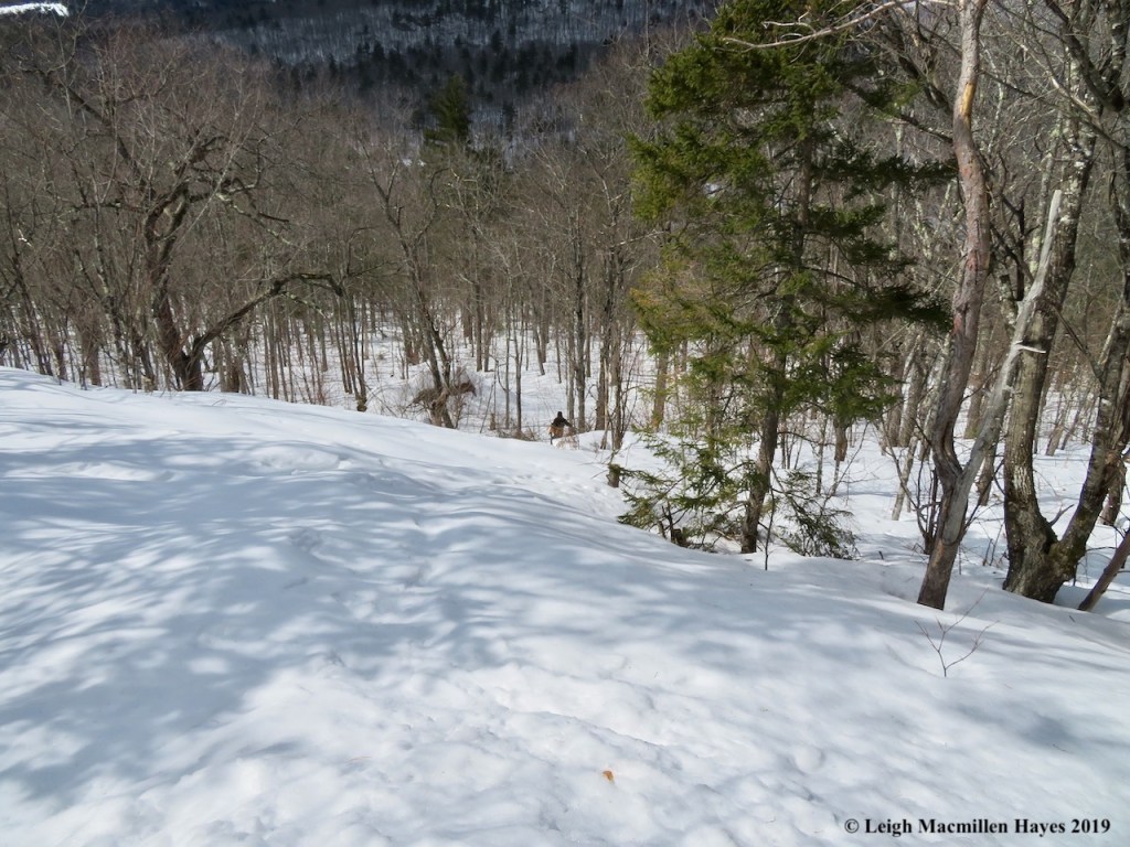 The community changed again as we approached the summit of Middle Mountain, where red pines dominated the scenery. And in the warm sun, the snow became softer.