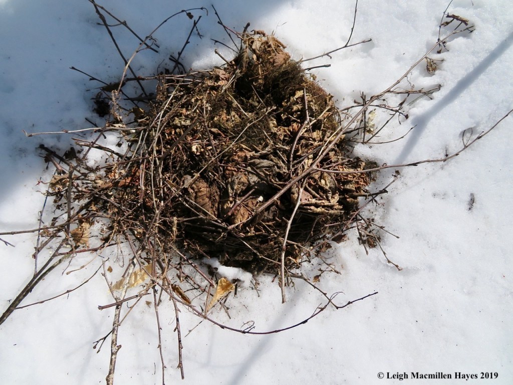 Embedded in the snow was a squirrel drey and we mentally noted its location so we can go back another day after its no longer frozen in place and try to dissect it in hopes of better understanding such a structure.