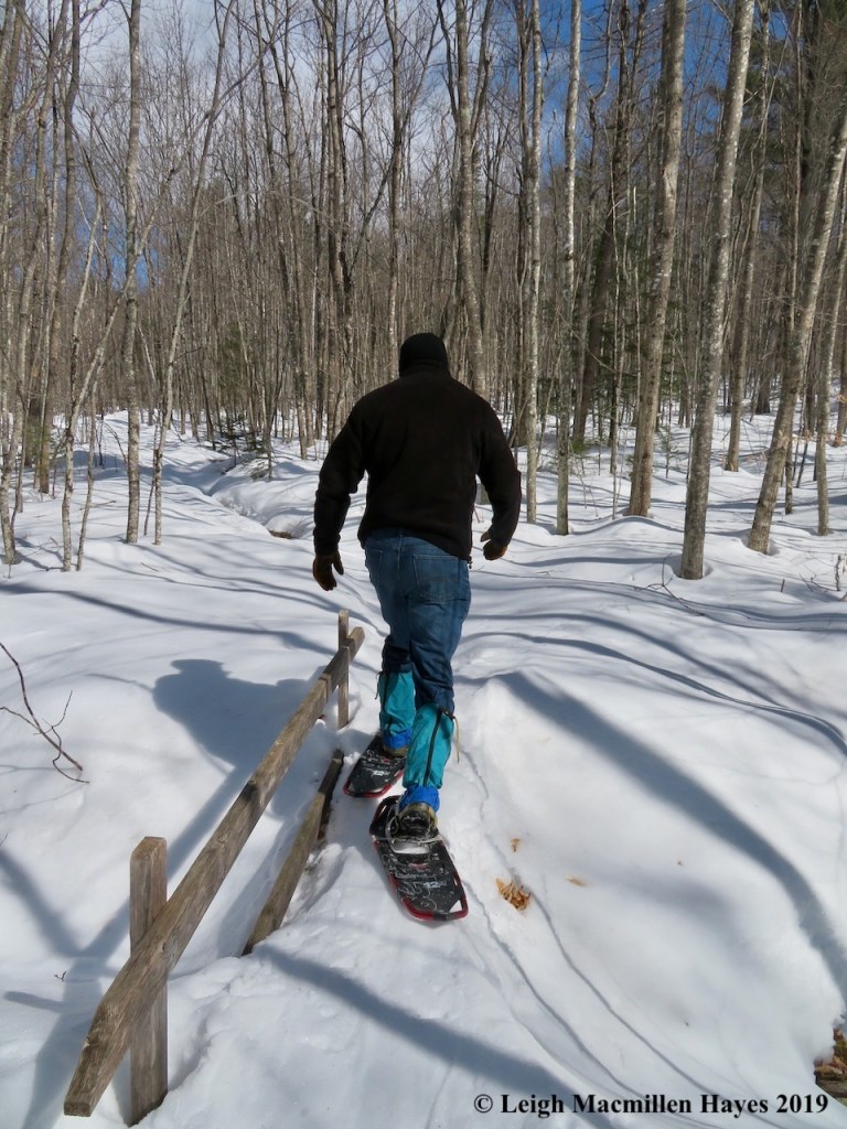 While yesterday’s trek meant slogging through the wet snow, today’s brisker temperature allowed us to stay on of the wintery surface, though we were thankful for our snowshoes.