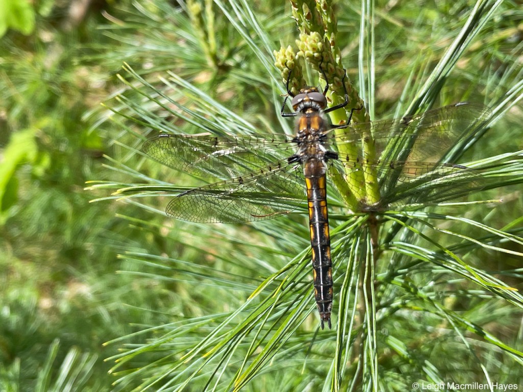 The yellow spot on segment seven (dragonfly abdomens consist of ten segments) is triangular in shape, aiding in the identification as I get my dragonfly eyes back on.