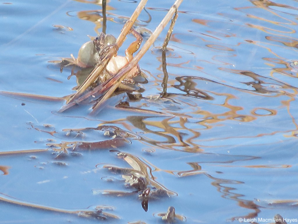 How about now? I had to wonder if she was laying eggs–that action I so wanted to see, but perhaps she wanted it to be a private moment between the two of them. If so, I had to wonder about their choice of placement, for from my experience of visiting this pool for the last 30 years, this is the side that dries up first and egg masses often end up drying up upon suspended branches that may be in the water now, but won’t be in a month or so if we don’t get enough rain.