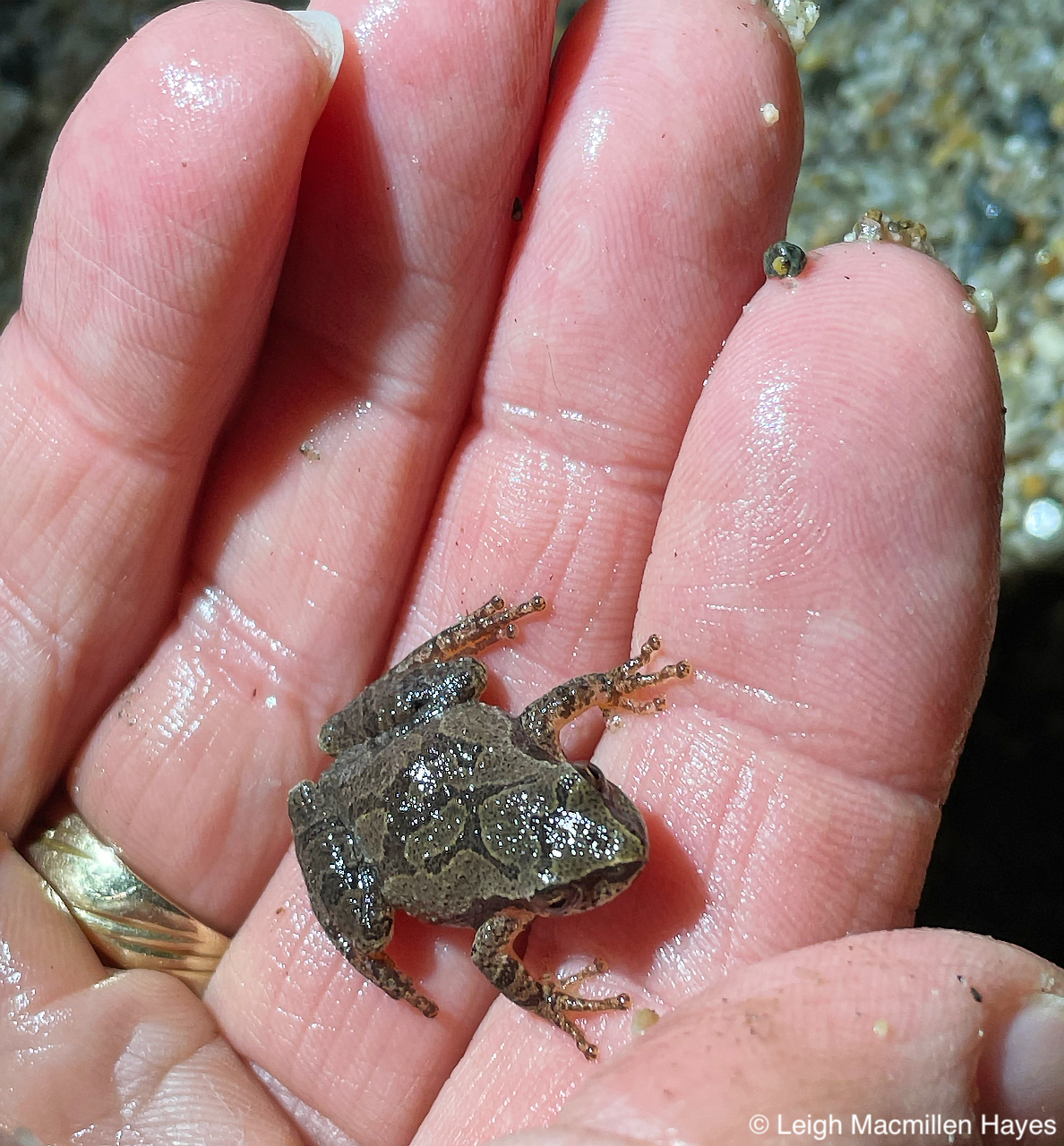 and this darker colored another. Wood Frogs range in color from light tan to dark brown. It’s difficult to differentiate the gender of this species, but I’ve read that the lighter colored ones tend to be females.
