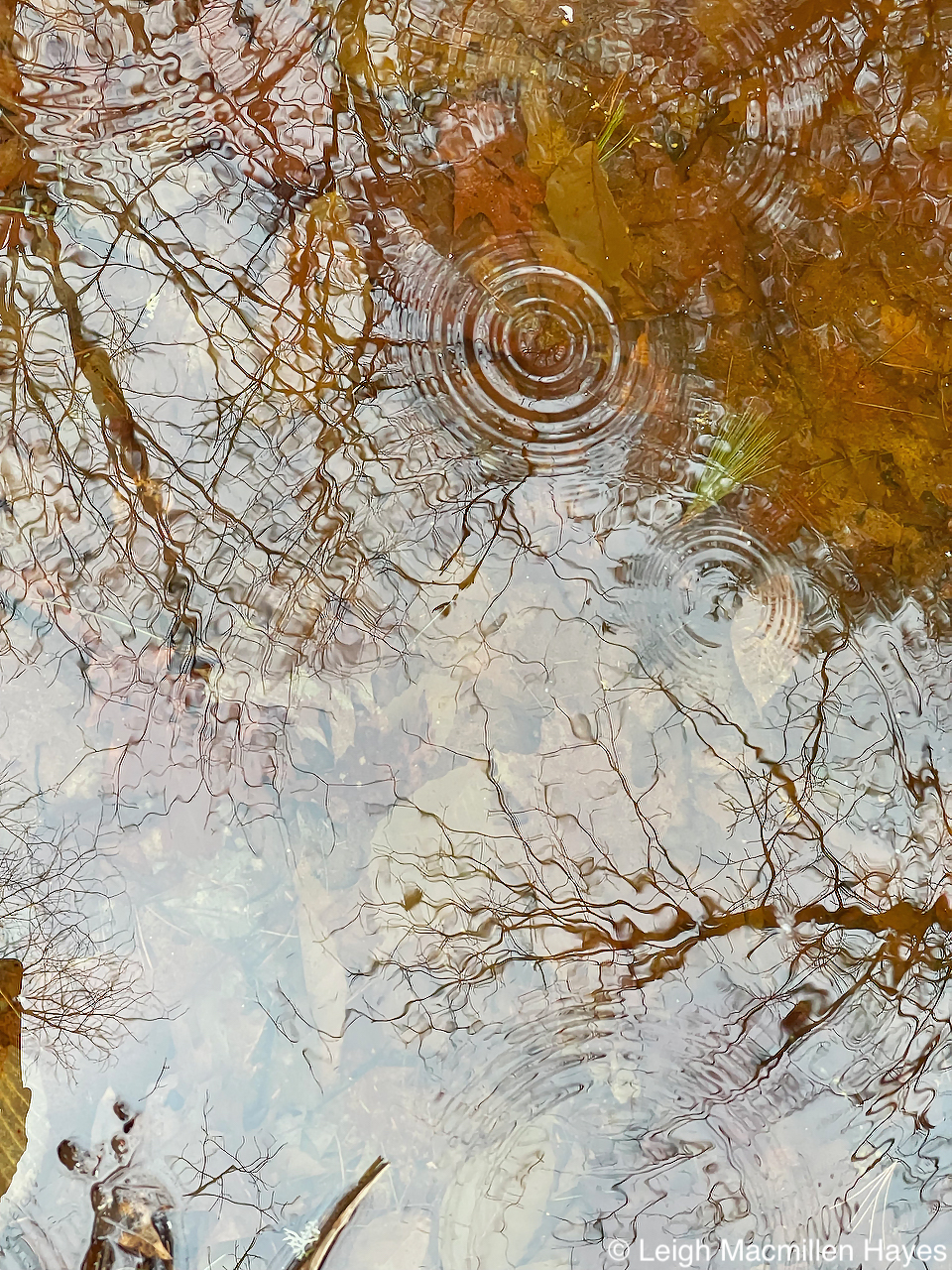 At the pool, one might say raindrops distorted the reflections captured on the surface. Or perhaps they enhanced it with a design that was ever evolving.