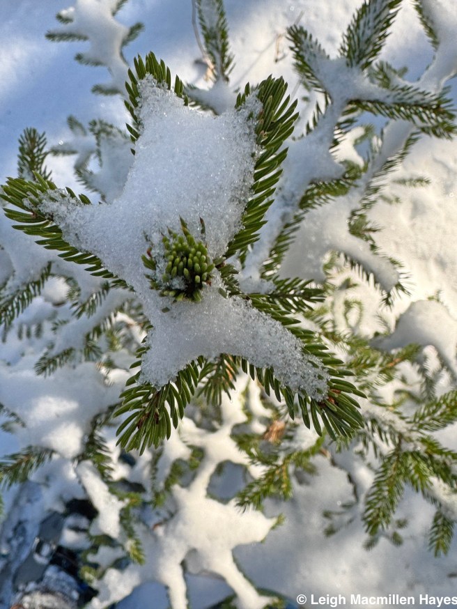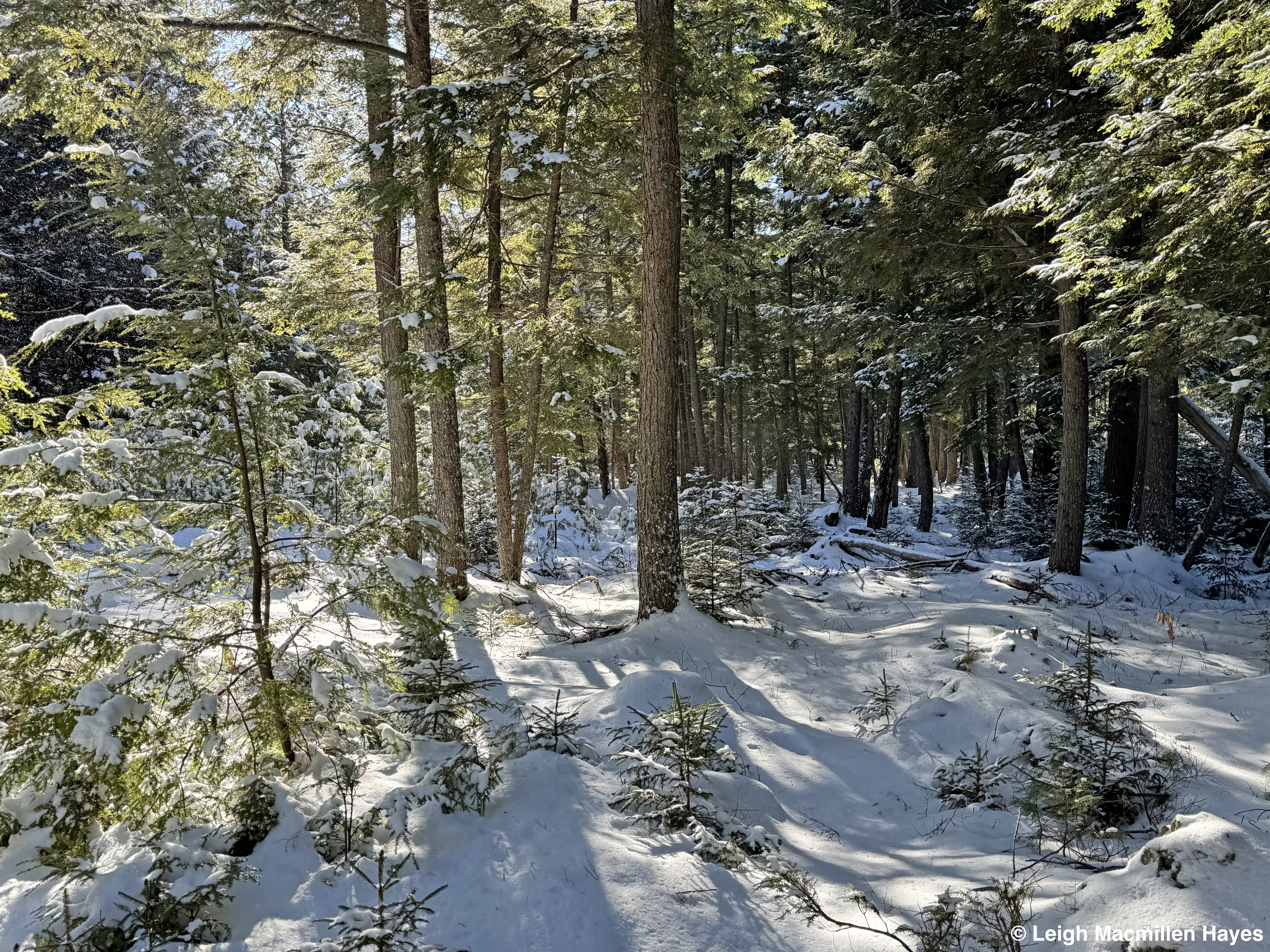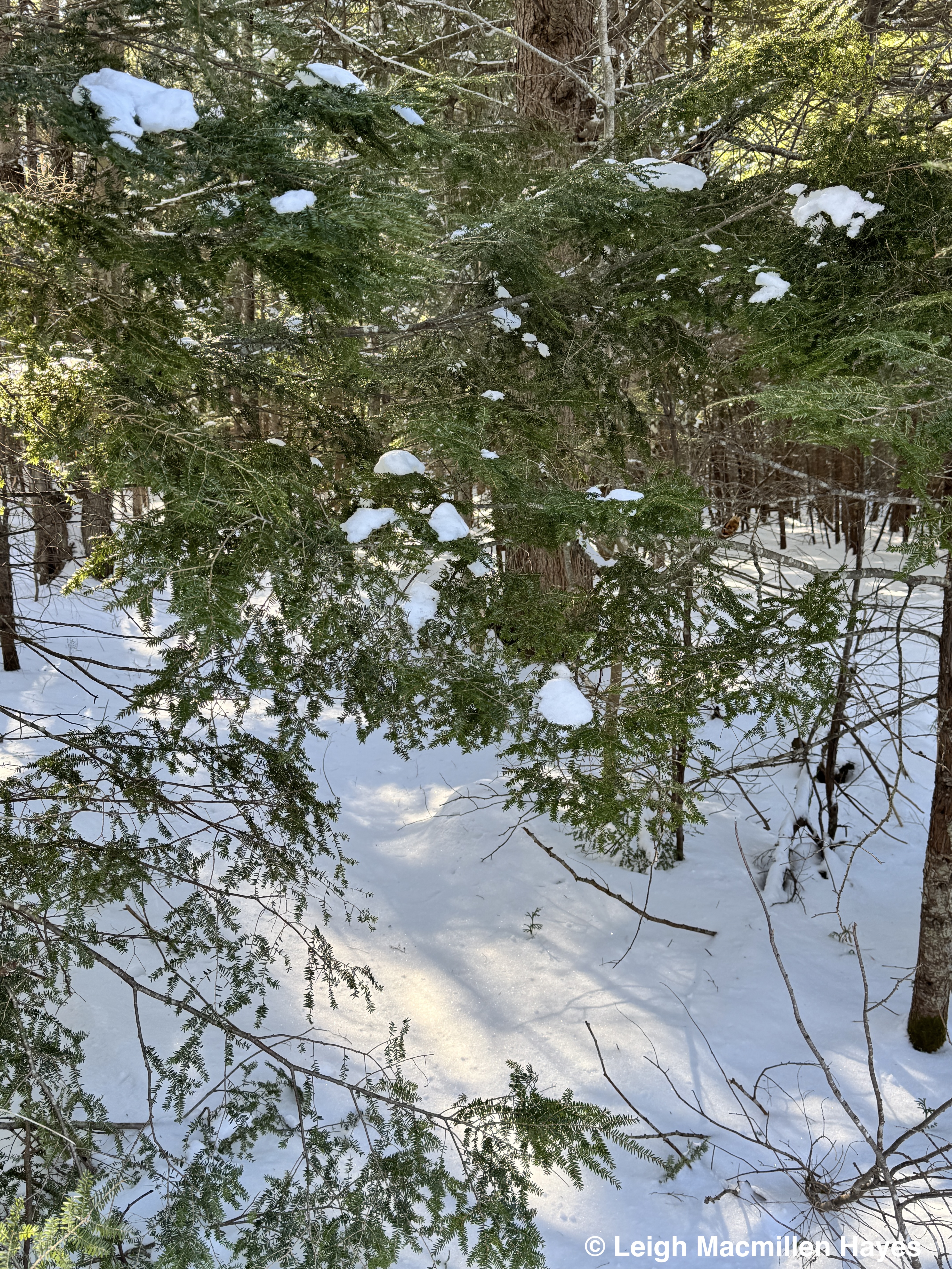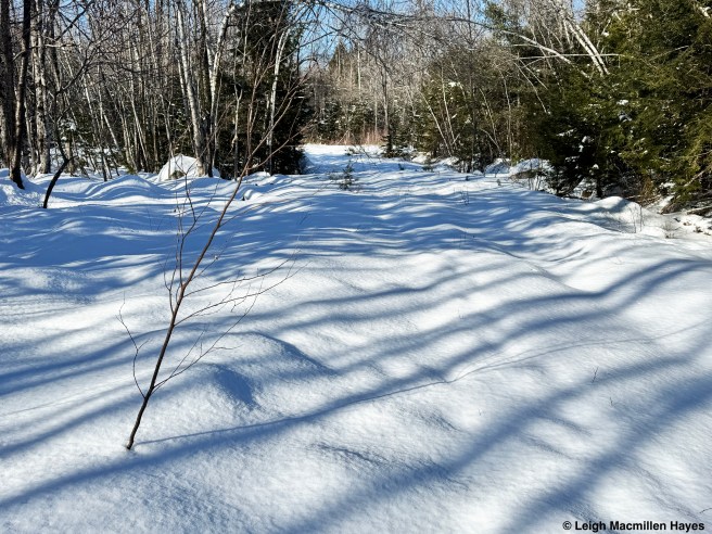 And with his drone we explore these areas we cannot easily access. This is one My Guy and I walked all the way around a few weeks ago without ever spying, though we knew it was there. But Bruce and I bushwhacked through a forest of White Pine Saplings and mature trees and reached the edge before he launched his bird and we were offered a glimpse of this most beautiful wetland with pockets of water connected by meandering rivulets.
