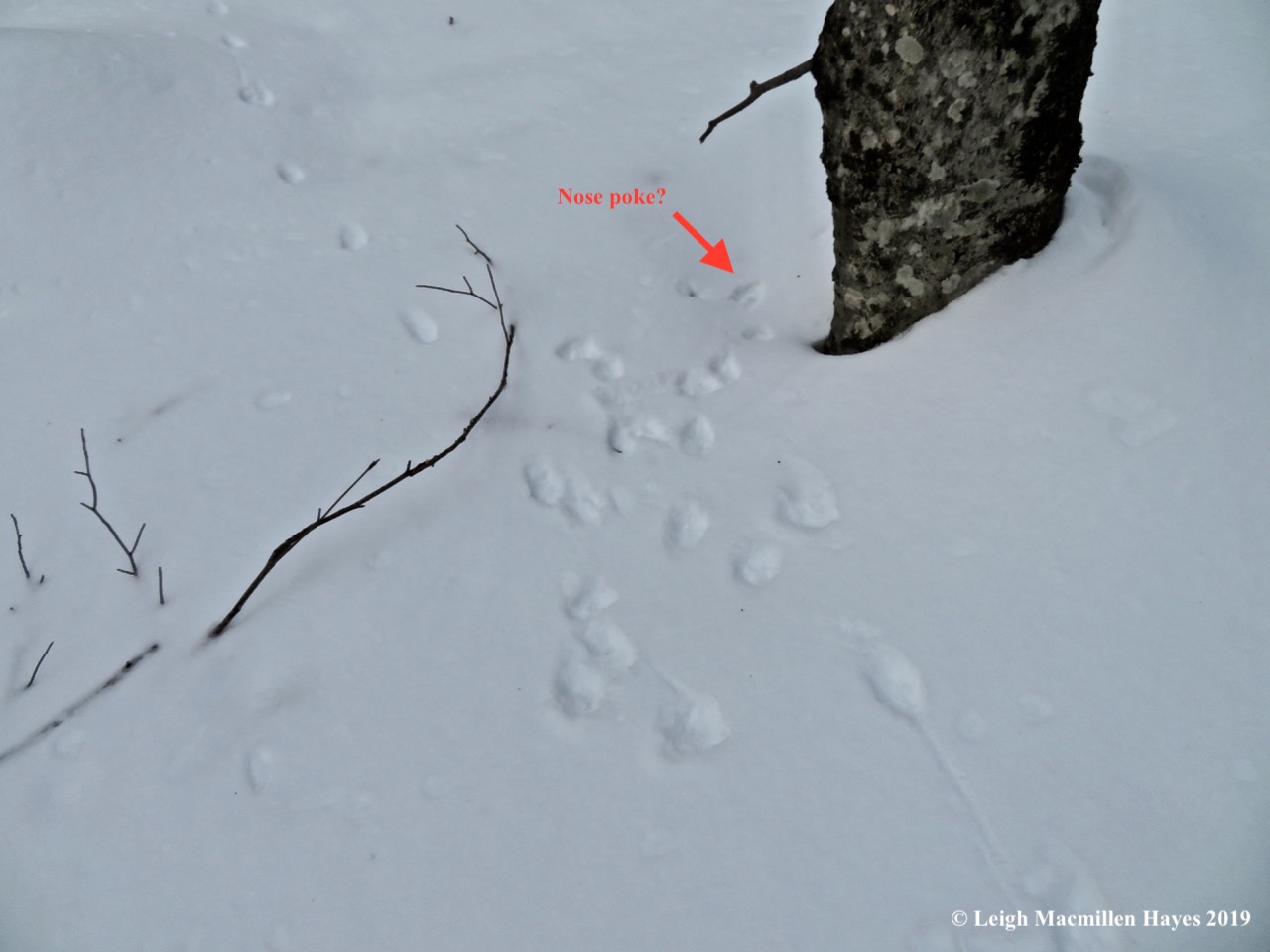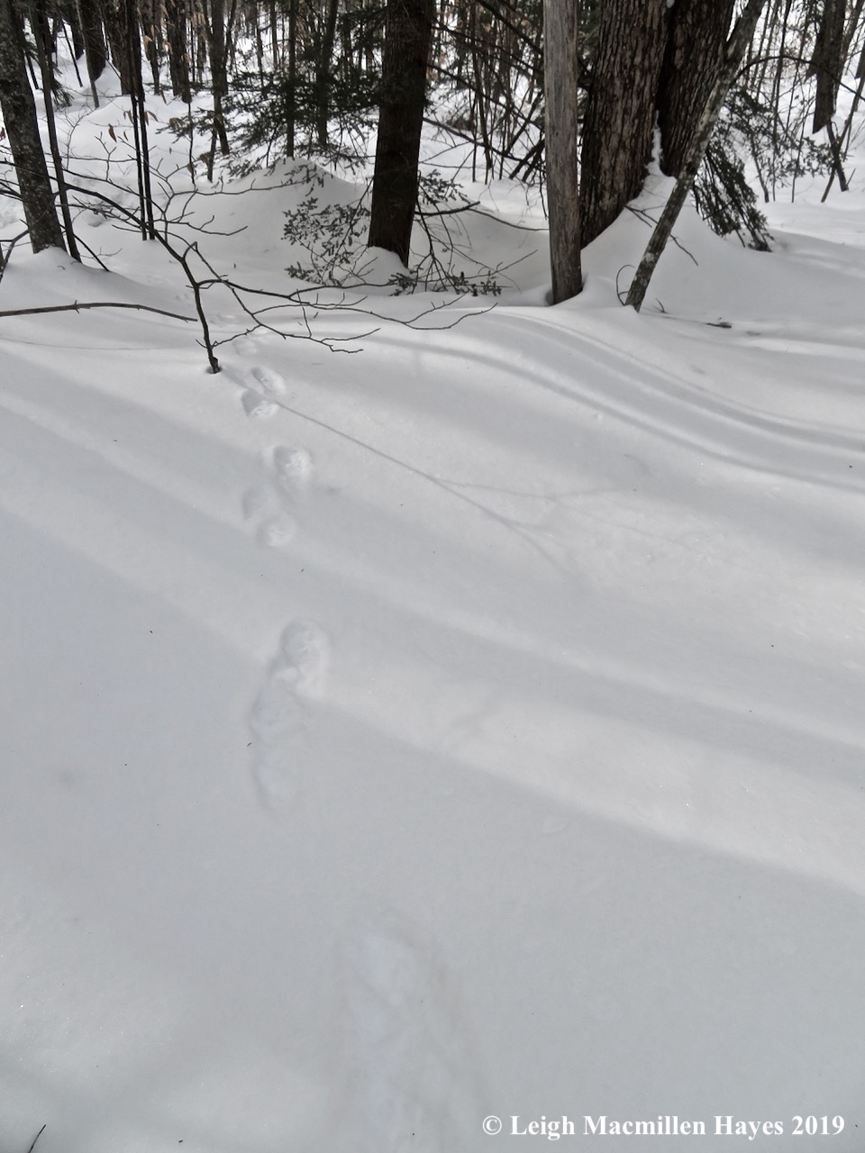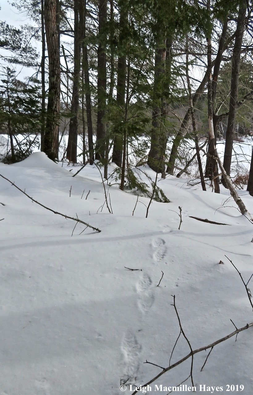 After lunch, we had a wee bit further to travel before reaching Province Pond. At the dam, our excitement heightened for we discovered moose tracks in the snow.