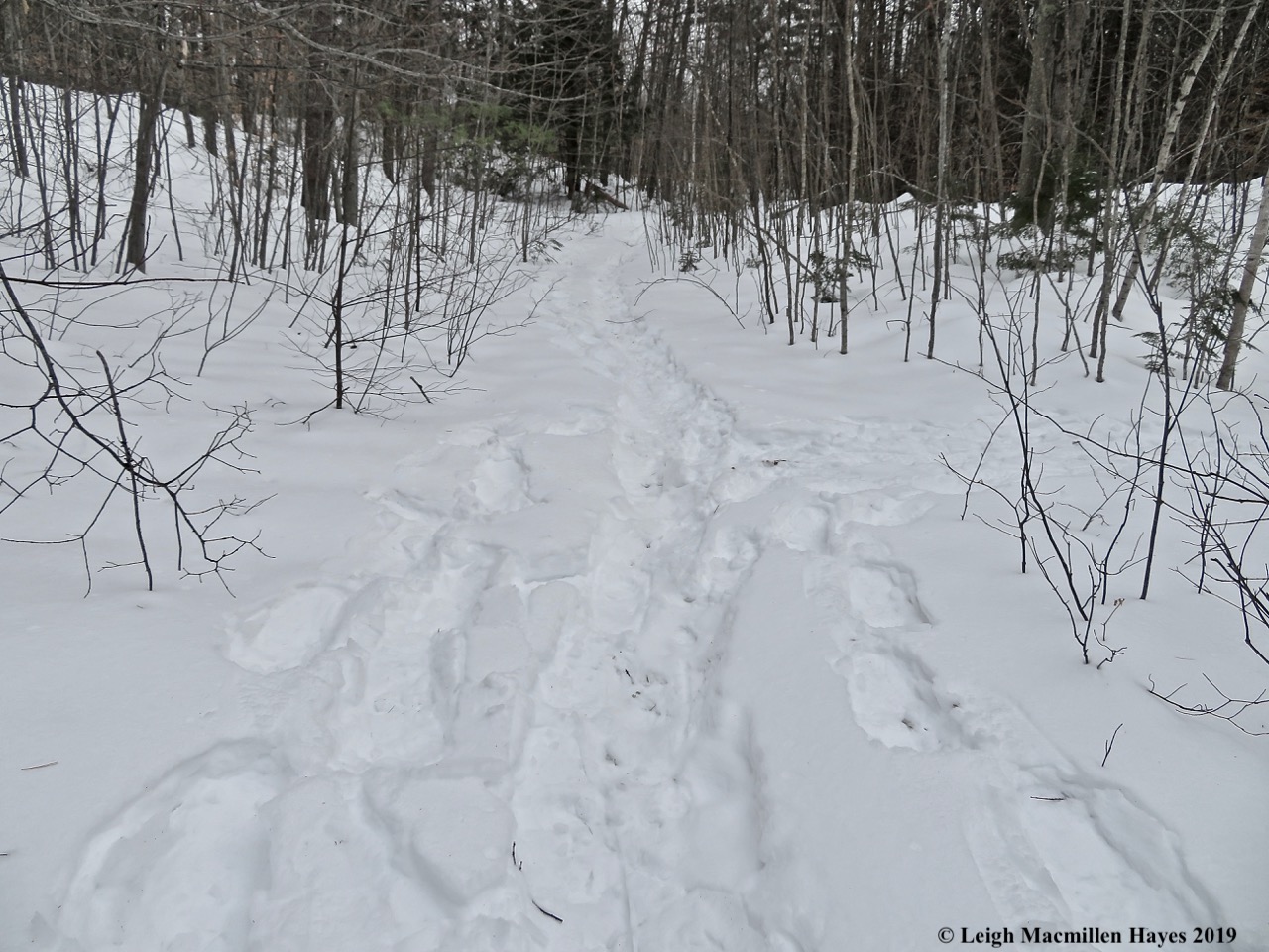What did agree with the Woodsum Trail was a moose or two or three. For much of the trail we spotted scat indicating they’d traveled this way all winter.