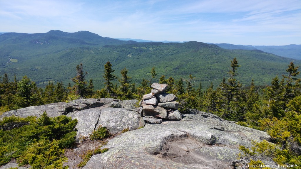And then we reached a cairn just below the summit. Mind you, the Black Flies were so incredibly thick that we could barely talk without devouring a few. In fact, we gave thanks for eating our lunch much lower on the trail, but even then we’d devoured PB&J with a side of BF.