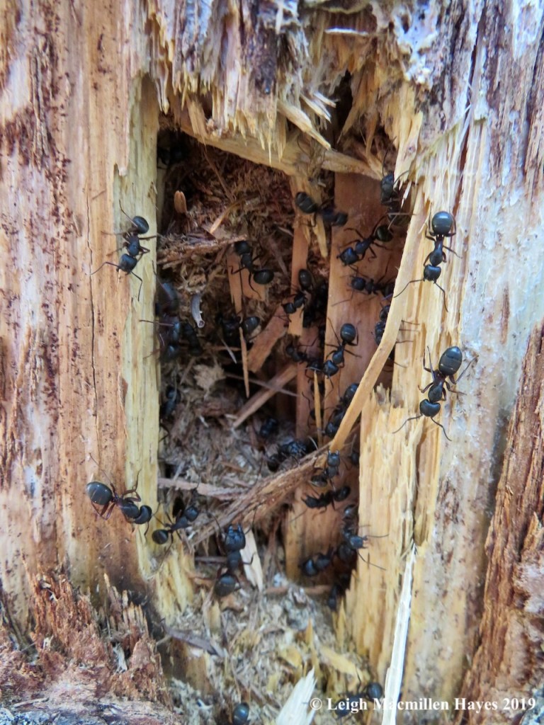 The descent via the Woodsum Spur is as varied as the ascent, but not always as easy to follow. There were downed trees, overgrown sections, lots of mud, and times when we had to search for the trail, much unlike the carpenter ants who knew exactly where they were going on a tree snag.