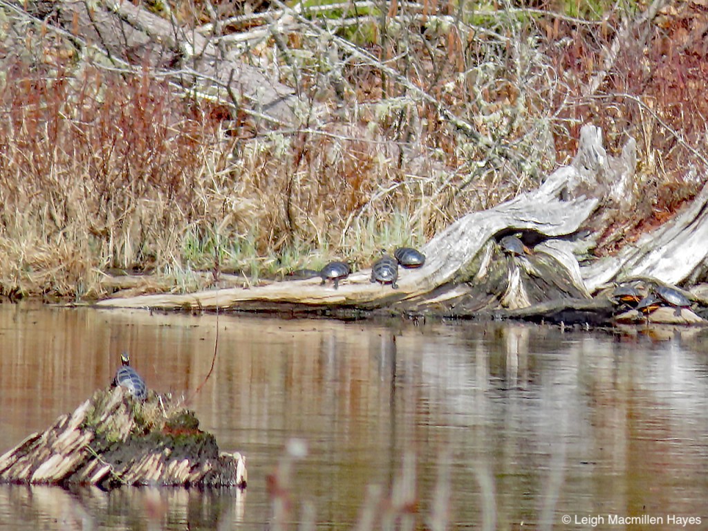 Standing for a while beside a river rather than a pool, another of my favorite sites was an abundance of Painted Turtles basking. No, they aren’t sunbathing to get a tan, but rather to raise their internal body temperature. Being cold-blooded, their body temperature is determined solely by the temperature of the surrounding environment.