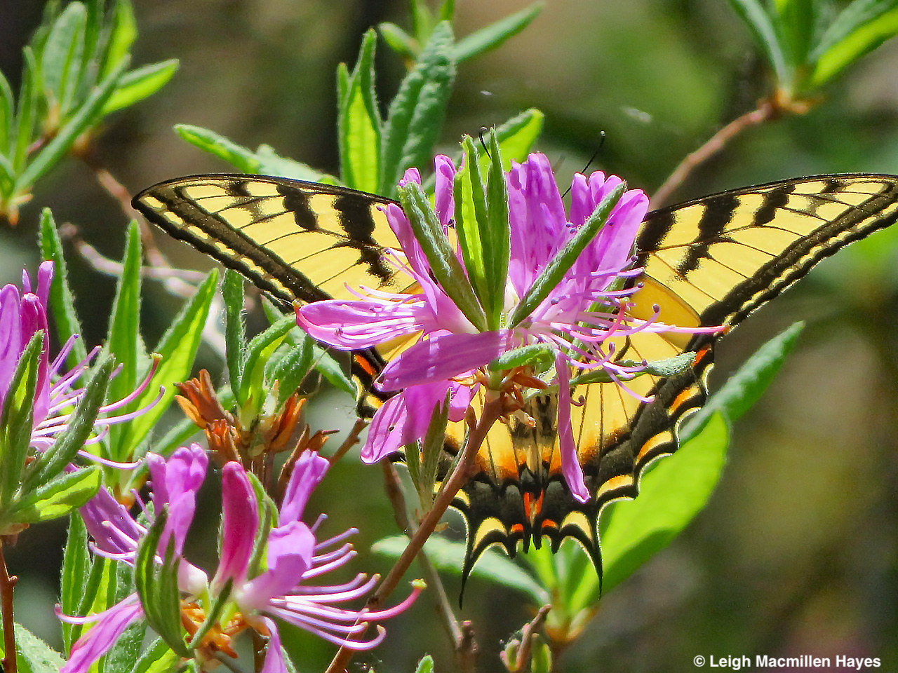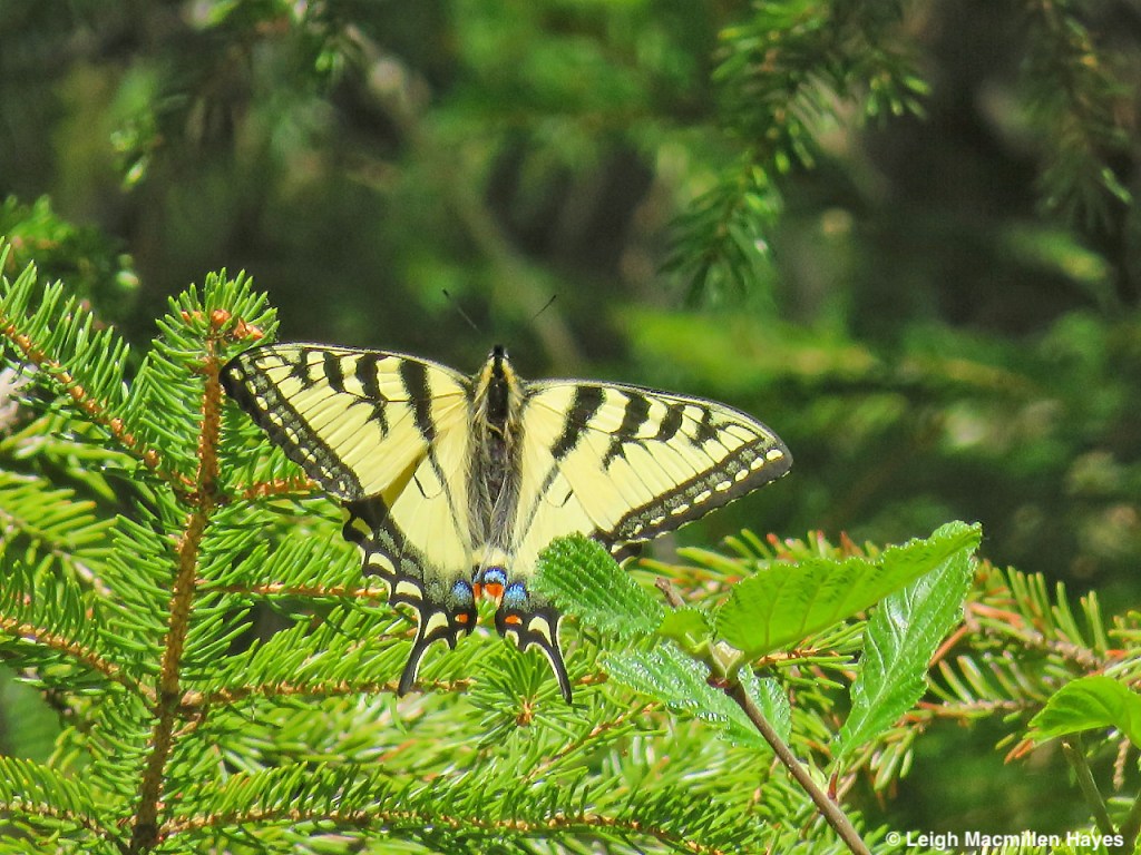 As we approached the top, where the naturally community transitioned, so did the insects. Here and there fluttered several Eastern Tiger Swallowtails. I’m never quite certain of my ID for these versus Canadian Tiger Swallowtails, but the latter has a solid yellow band on the trailing edge of the forewings and the yellow is broken by black for Eastern. Also, on the hind wings, if I’m correct, the blue on the Eastern is outlined in black arcs or curves, while the black line is straight for a Canadian Tiger.