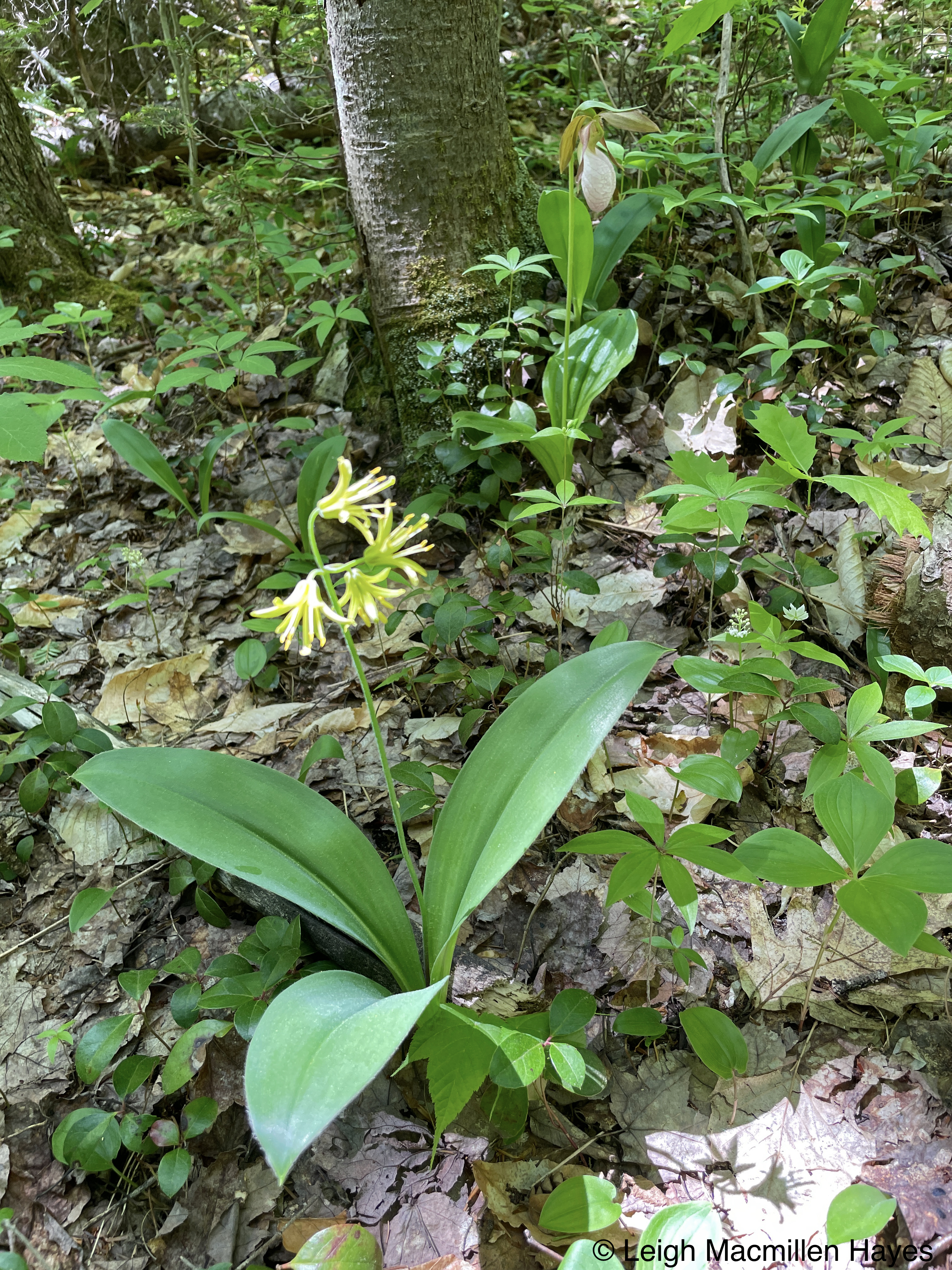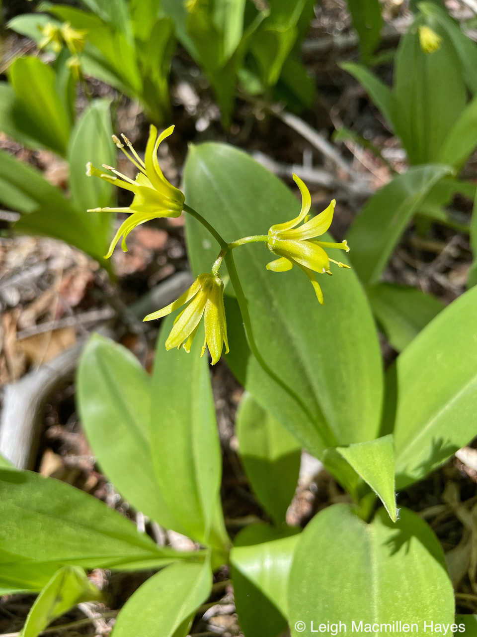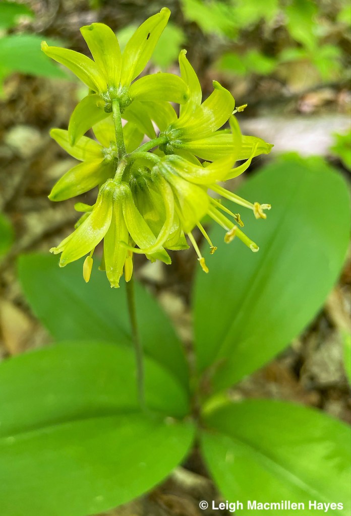 And so today I celebrated my first meeting of 2024 with Sessile-leaf Bellwort, aka Wild Oat. And where there was one, there were a million, the subtle yellow bell dangling quietly below.