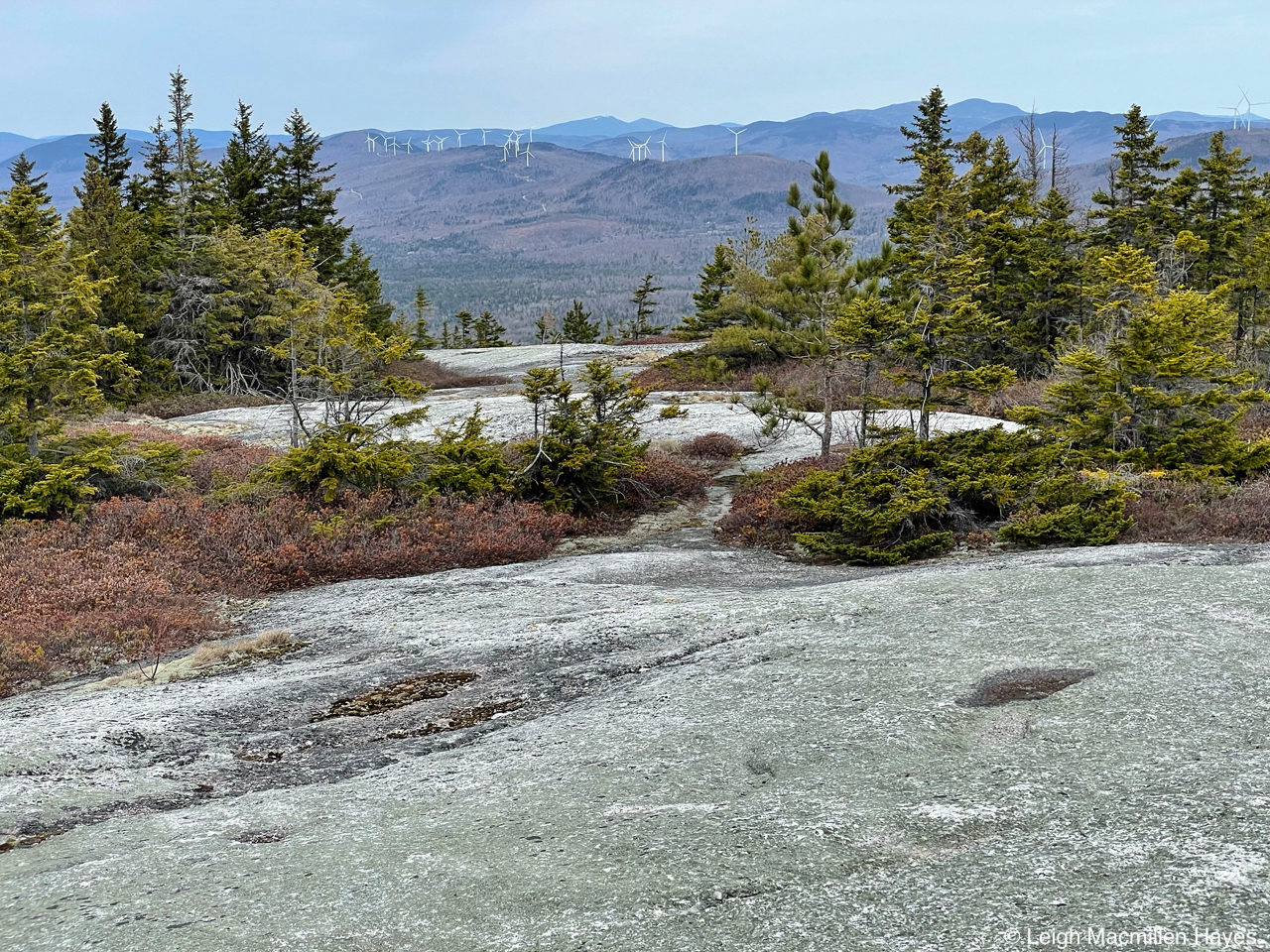 Below the summit, we paused to share lunch with the Black Flies and take in the view of the mountains, though many were obscured by the cloud cover.