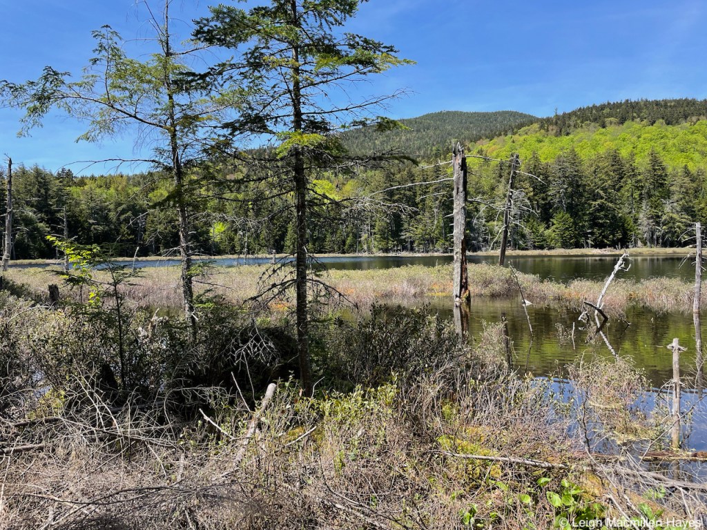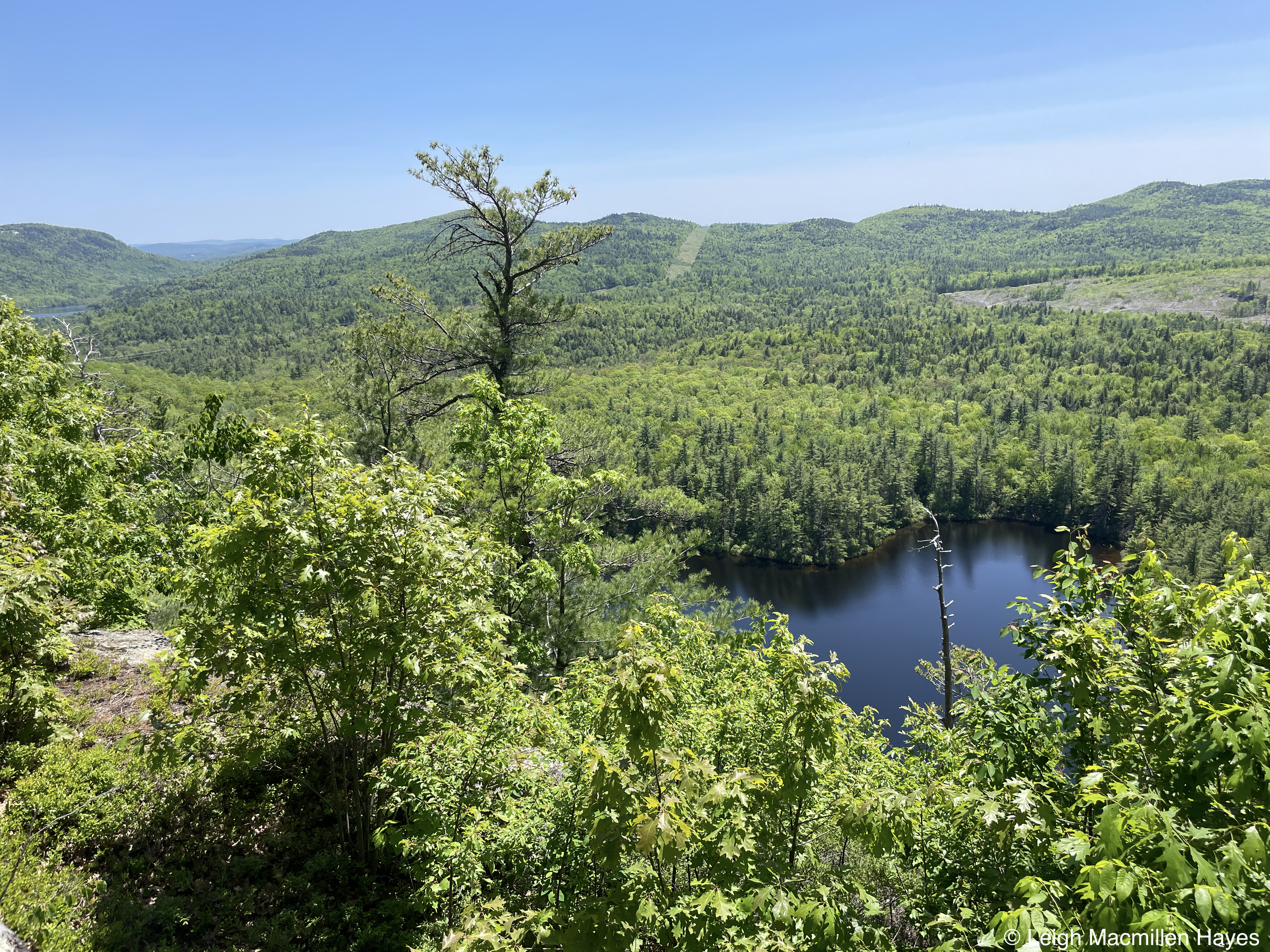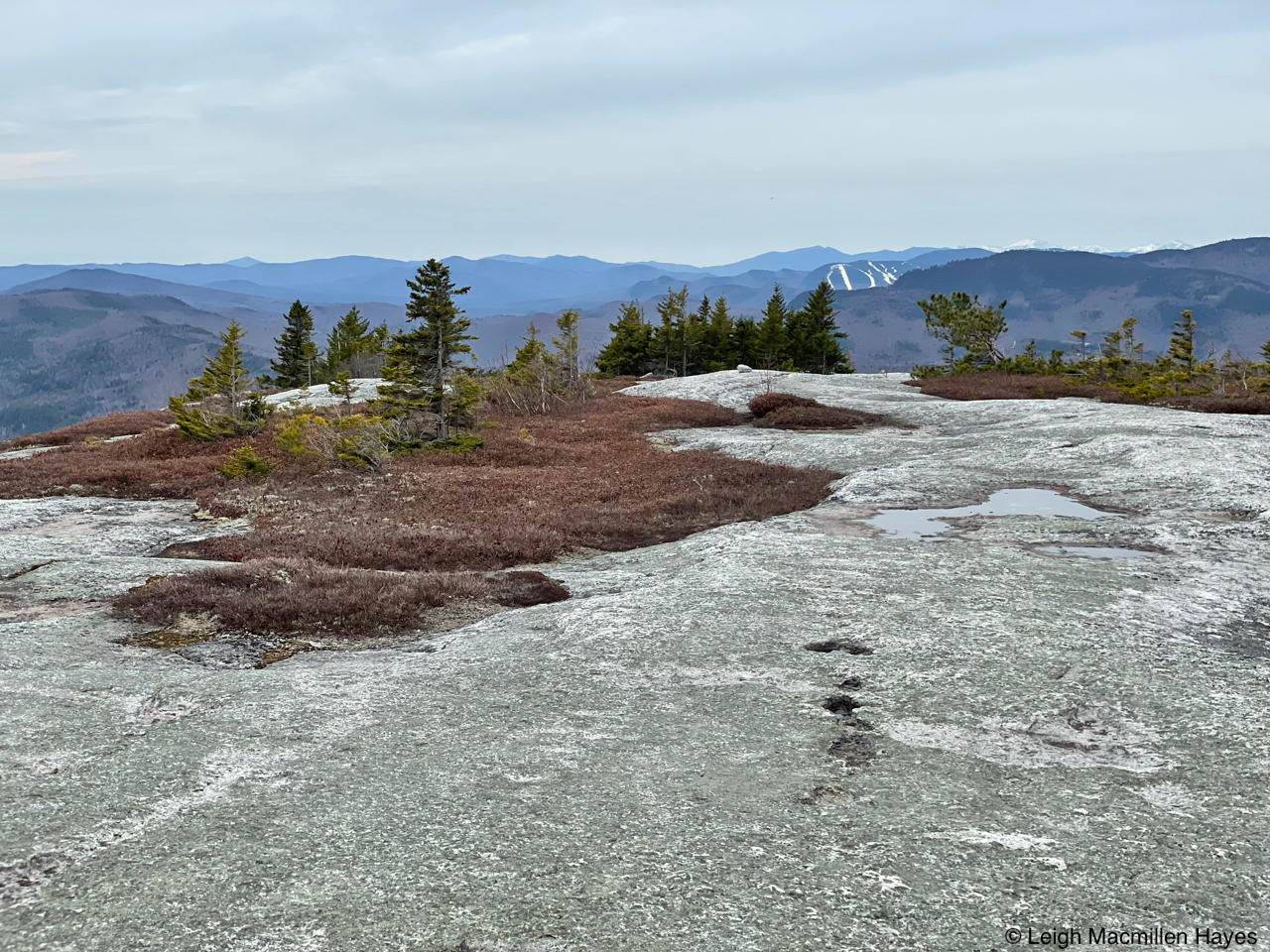 From the ledges above, we had a great view of Echo Lake, and the mountains beyond, with Cranmore’s Ski Area showing the last of the melting snow.