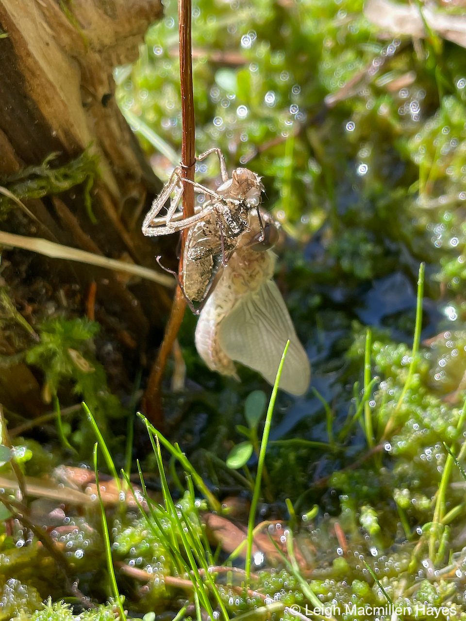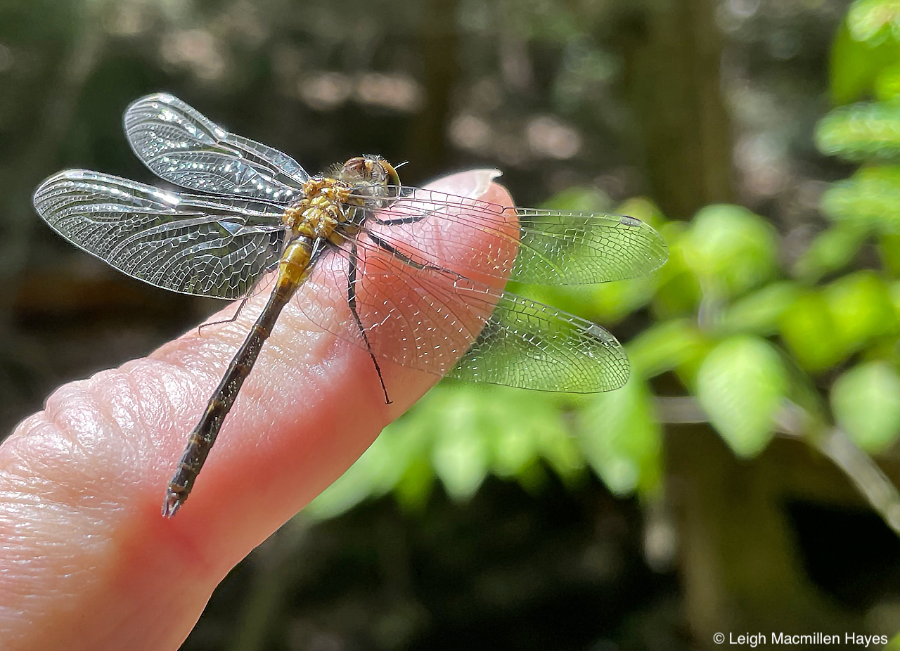 Likewise he’s occasionally rewarded with pendants, this being an immature Chalk-fronted Skimmer dragonfly.