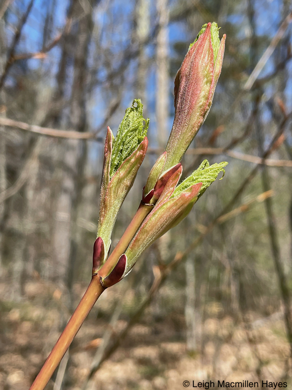We also encountered numerous Hobblebush shrubs, some even featuring flowers preparing to open into what will be a fantastic display on another day. On this day, it was enough to see their accordion leaves beginning to unfurl, and those flowers presenting like a bunch of worms crawling over each other as if to say, “Me first. Me first.”